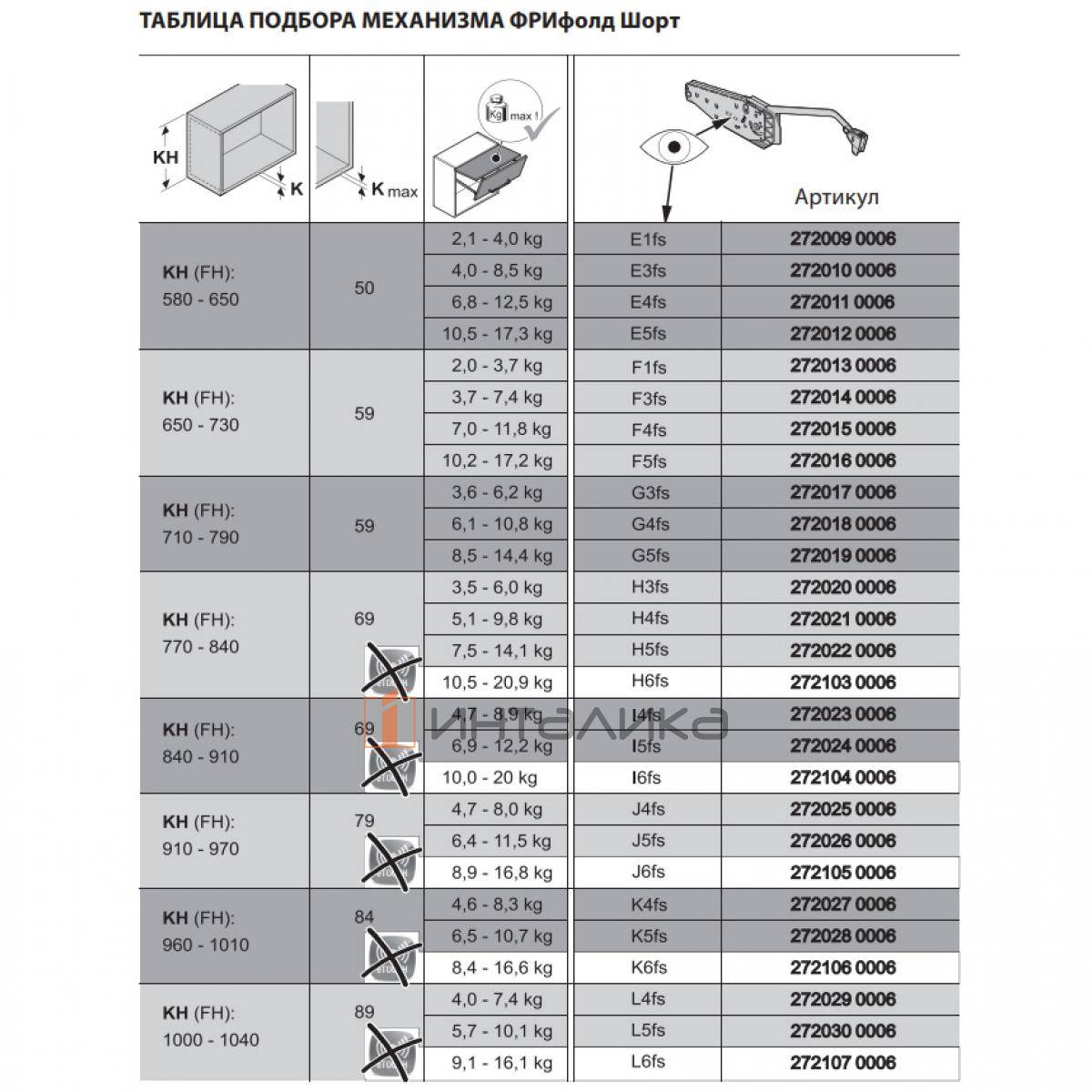 Силовые механизмы с рычагами KESSEBOHMER FreeFold Short, тип H4fs, H770-840, G5.1-9.8