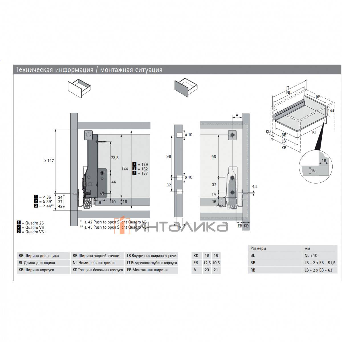 Минимальная глубина корпуса для установки ящика составляет +15 мм к номинальной длине ящика