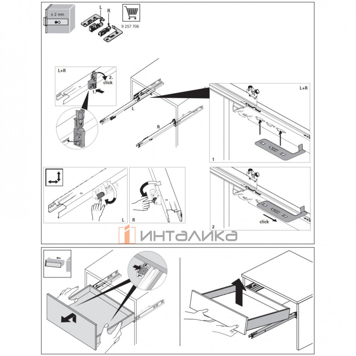 Быстрый удобный надвижной монтаж ящика без инструментов, с помощью замков (фиксаторы заказываются отдельно)