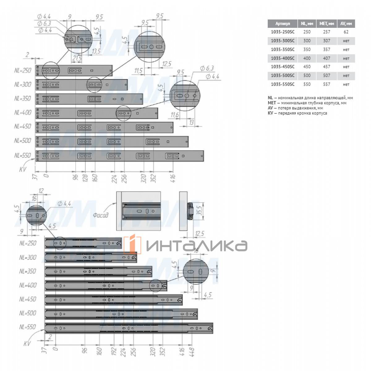 VEKTOR BS35 SOFT направляющие 400 мм, шариковые, h35 мм, полн.выдвижения, плав. закрывания (1035-400SC), 1035-400SC