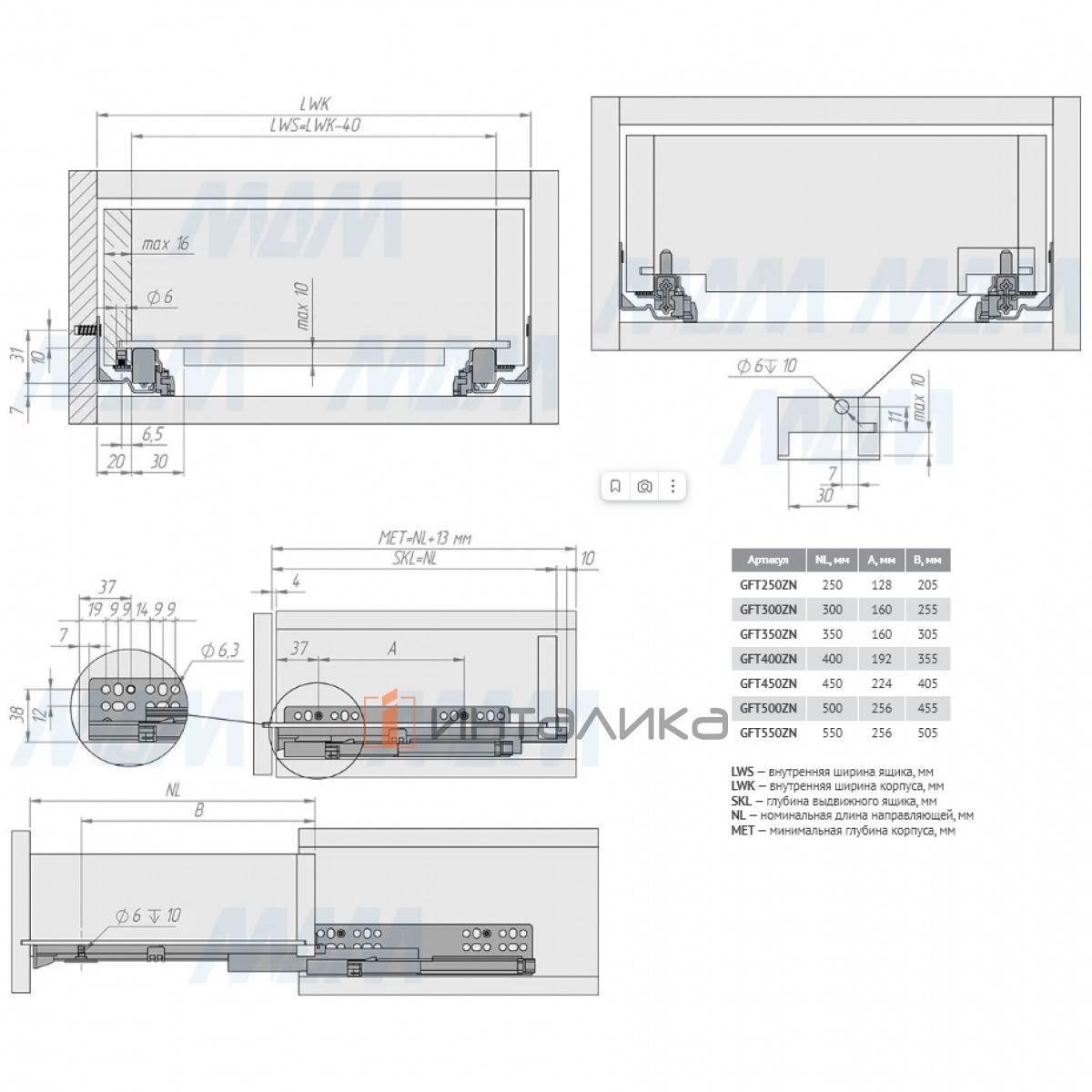 VEKTOR GFT направляющие 400 мм, ниж. крепления, полн. выдвижения, с толкателем (GFT400ZN), GFT400ZN