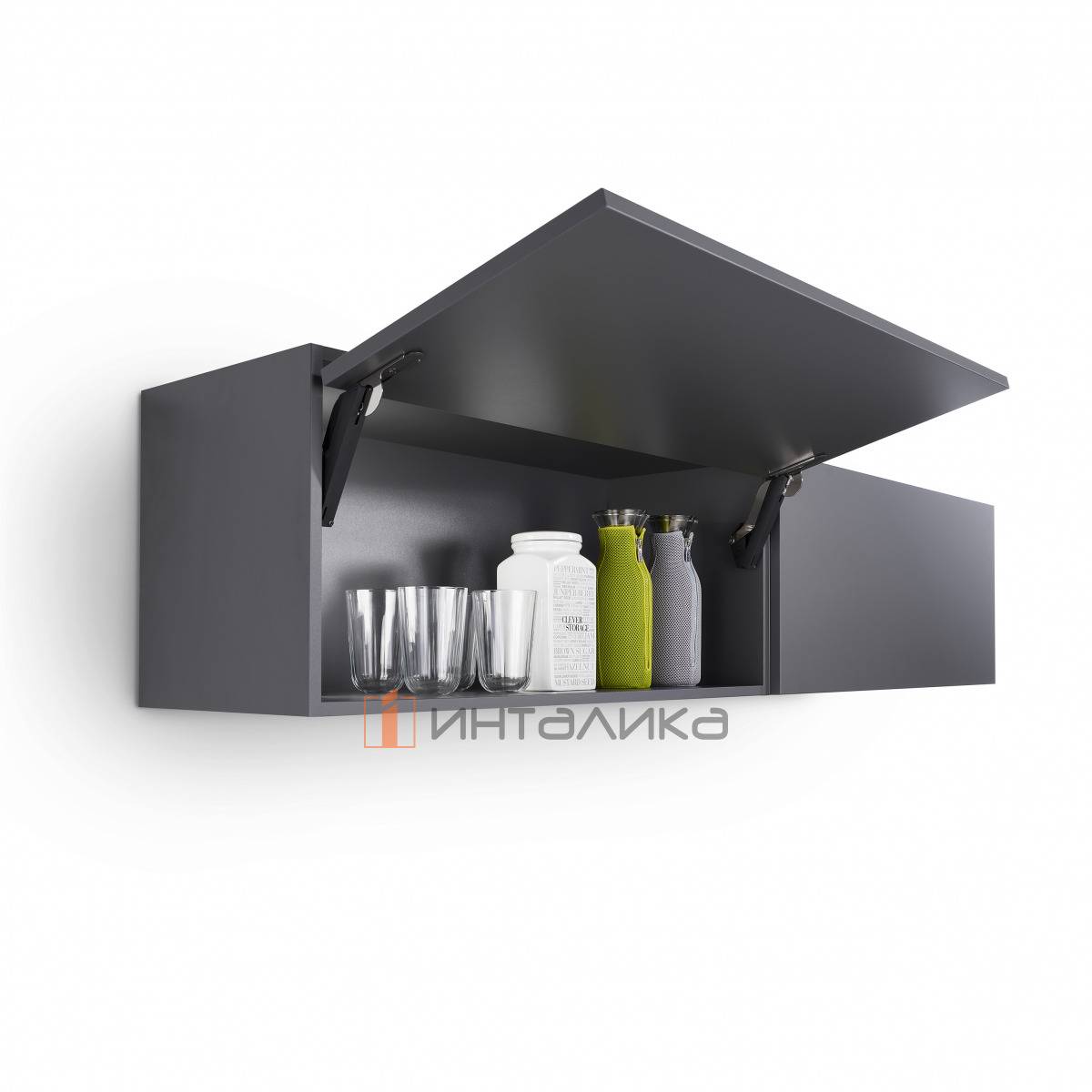 Расположение силовых механизмов в верхней части фасада дает возможность на установку дополнительных полок