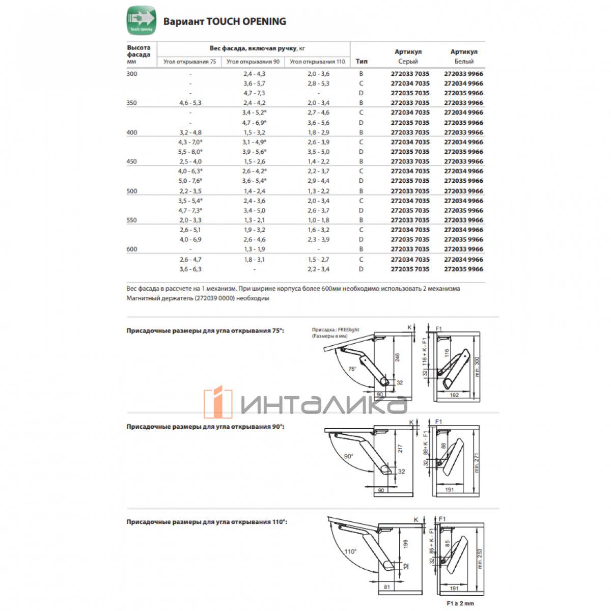 FREE LIGHT - это компактный поворотный подъемник для небольших деревянных фасадов и навесных шкафов с незначительной глубиной