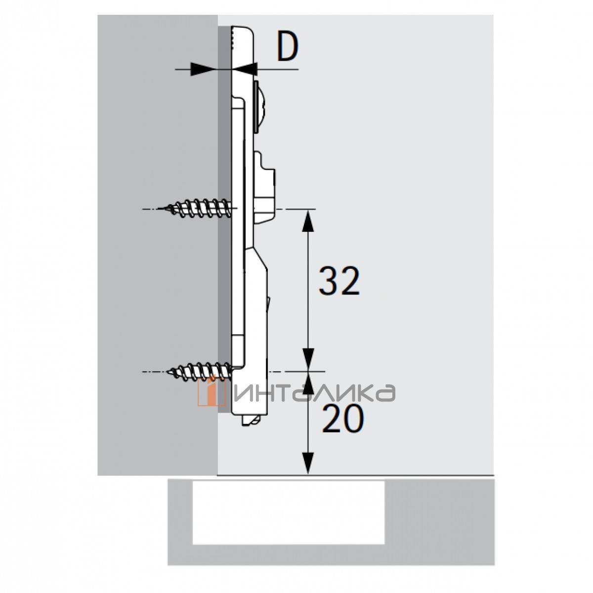Прямая ответная планка HETTICH Sensys под саморезы с эксцентриком и регулировкой по высоте