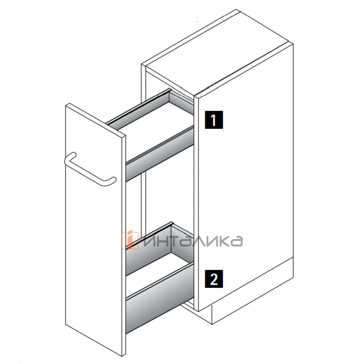 Бутылочница HETTICH AvanTech You Cargo IQ plus - надежный двухъярусный выдвижной элемент для узких шкафов, базирующийся на направляющих полного выдвижения Actro YOU