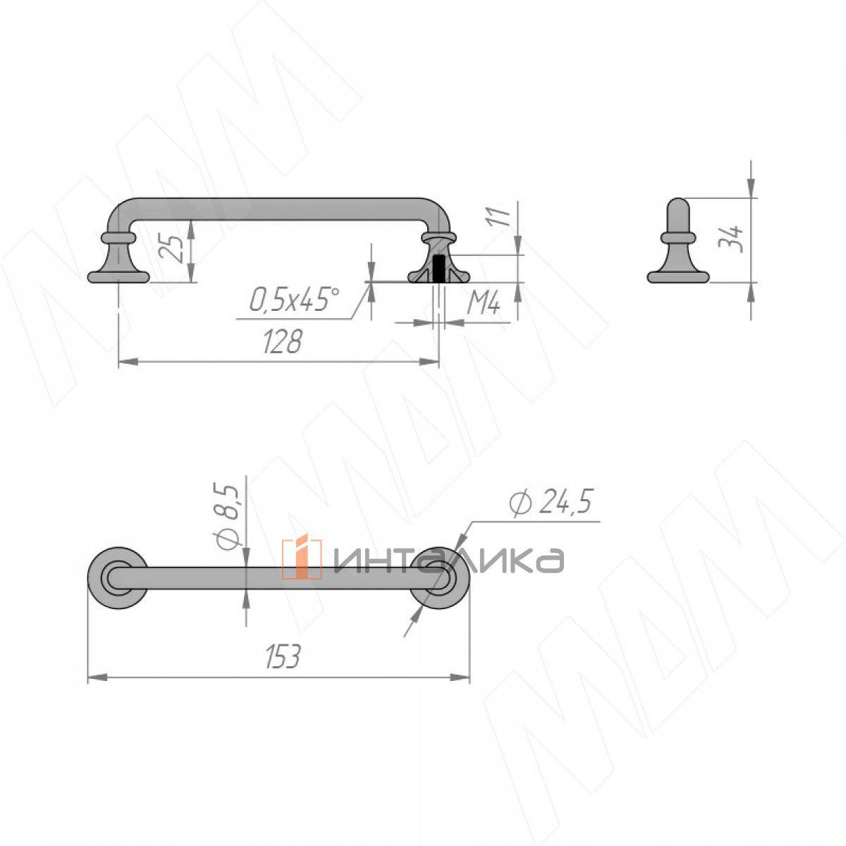 Ручка-скоба 128мм чугун гранж (WMN.839.128.005F), WMN.839.128.005F
