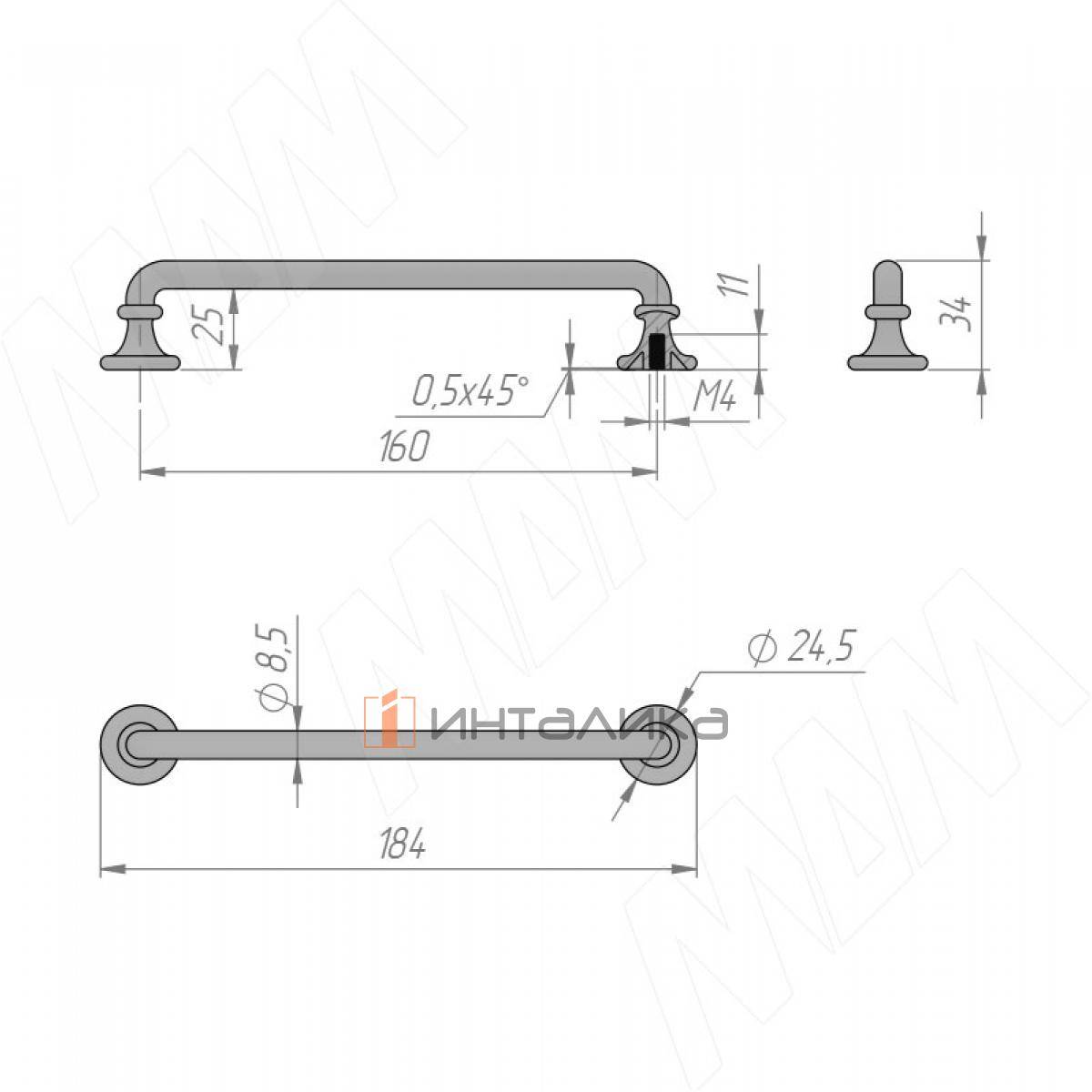 Ручка-скоба 160мм чугун гранж (WMN.839.160.005F), WMN.839.160.005F