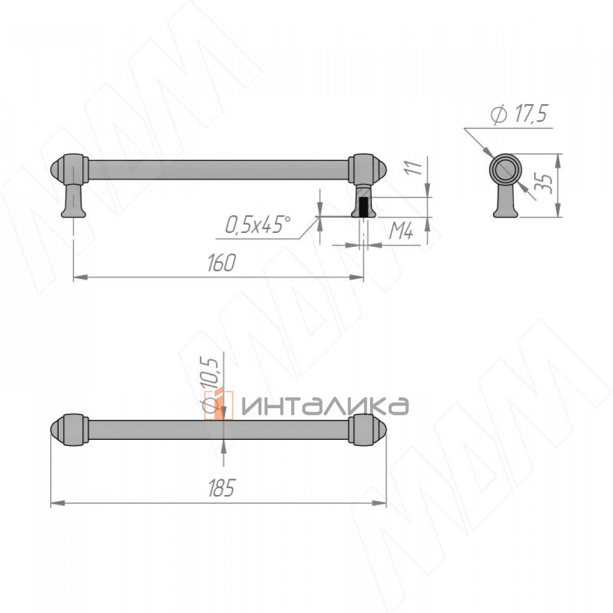 Ручка-рейлинг 160мм серебро состаренное (WMN.850.160.00E8), WMN.850.160.00E8