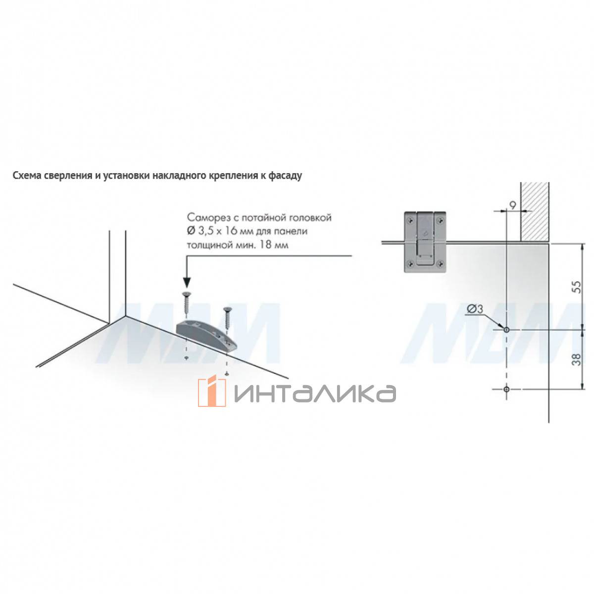 Комплектация: механизм, накладное крепление для фасада, врезное крепление для фасада, крепёж, инструкция