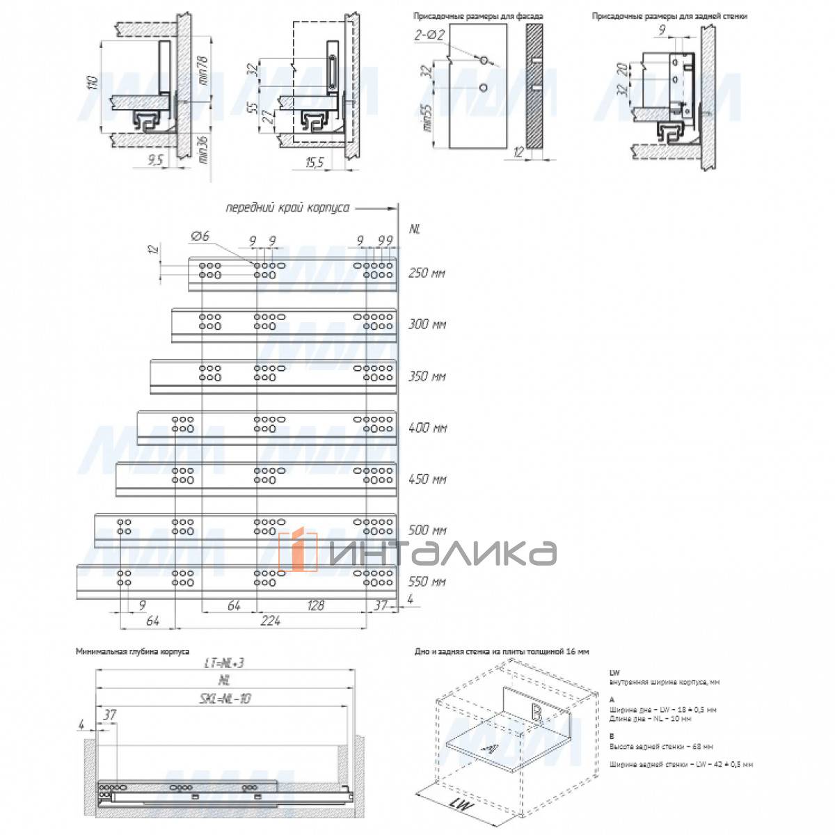LS BOX комплект ящика 300 мм, цвет серый металлик (боковины h88 мм с направляющими плавного закрывания) (LS88300), LS88300