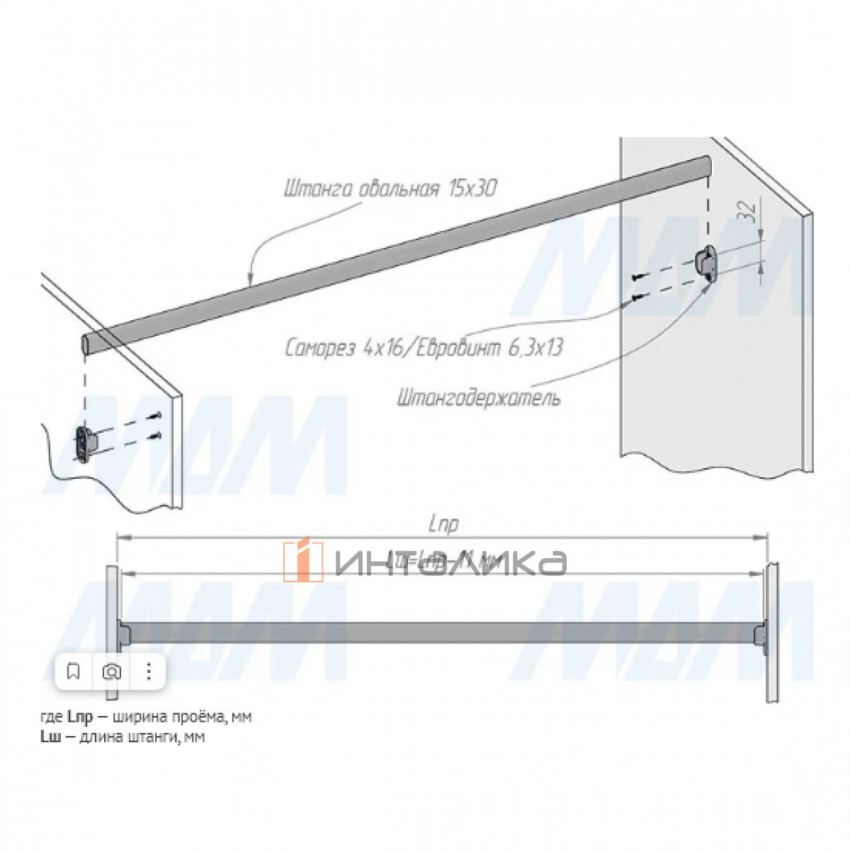 Примечание: с креплением к боковой стенке шкафа