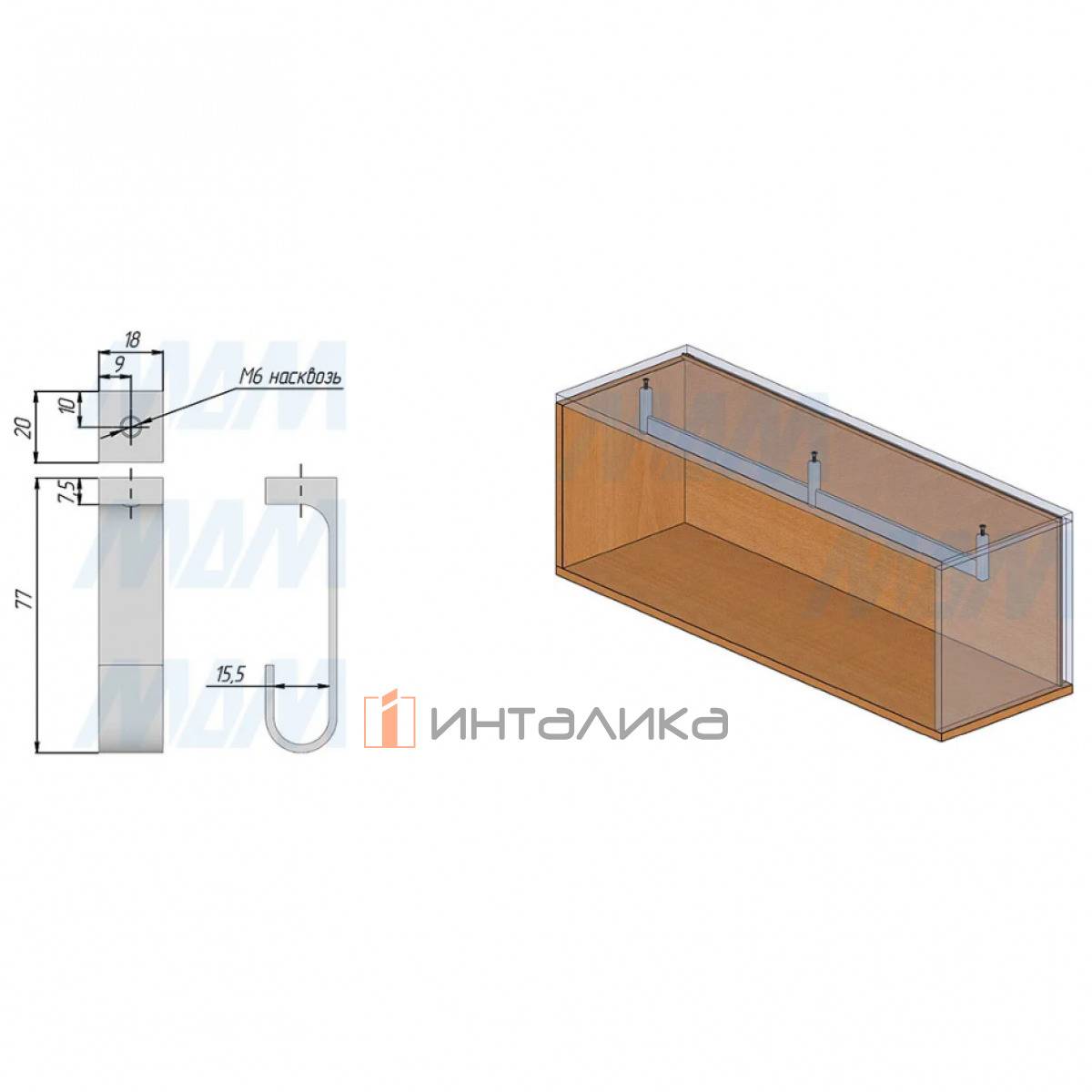 Штангодержатель для овальной штанги, центральный, черный, крепление к полке (WA0612CBL), WA0612CBL