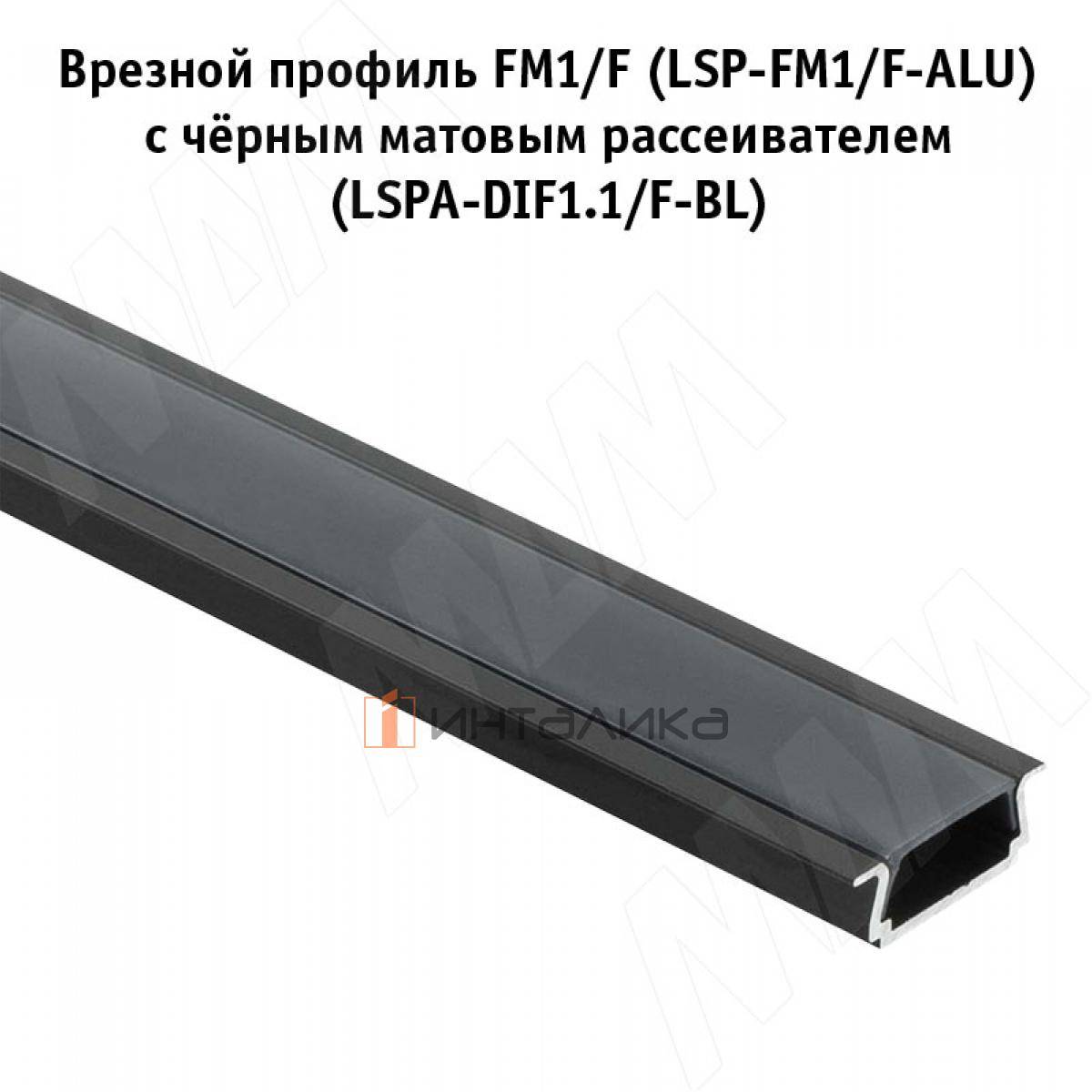 Профиль FM1/F, врезной, черный, 18х6мм, для плоского рассеивателя, L-3000 (LSP-FM1/F-ALU-3-BL), LSP-FM1/F-ALU-3-BL