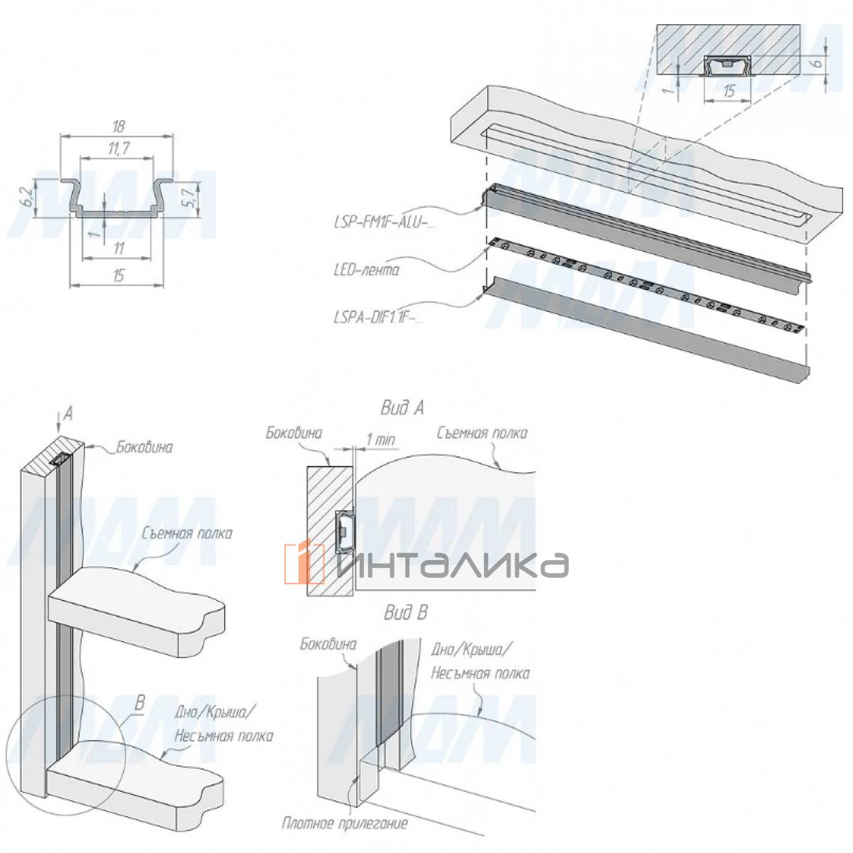 Применение: для установки светодиодной ленты шириной до 10 мм