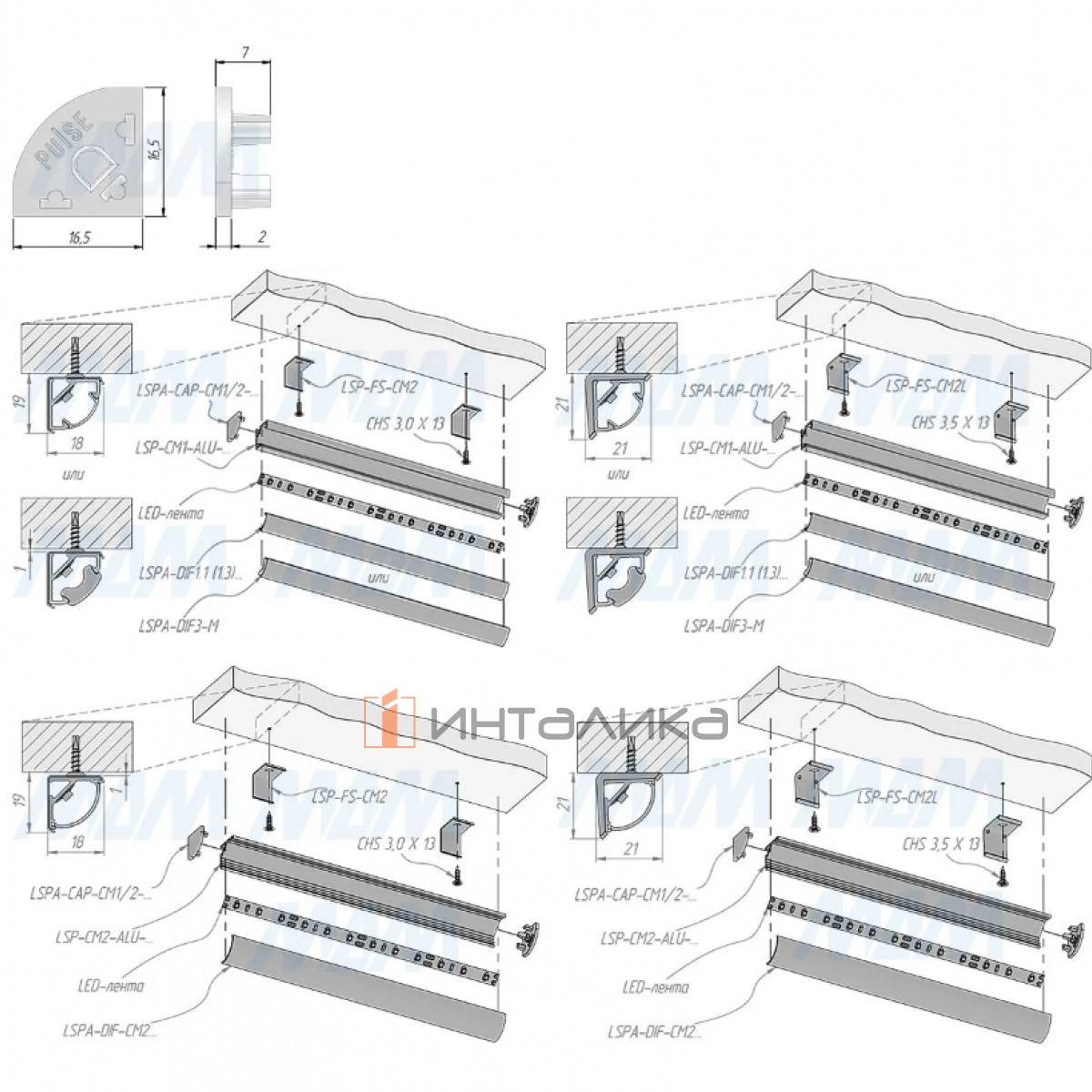 Вид профиля: широкий/с овальным рассеивателем, тип установки: угловой монтаж, материал: пластик, цвет: золото матовое, серия: CM