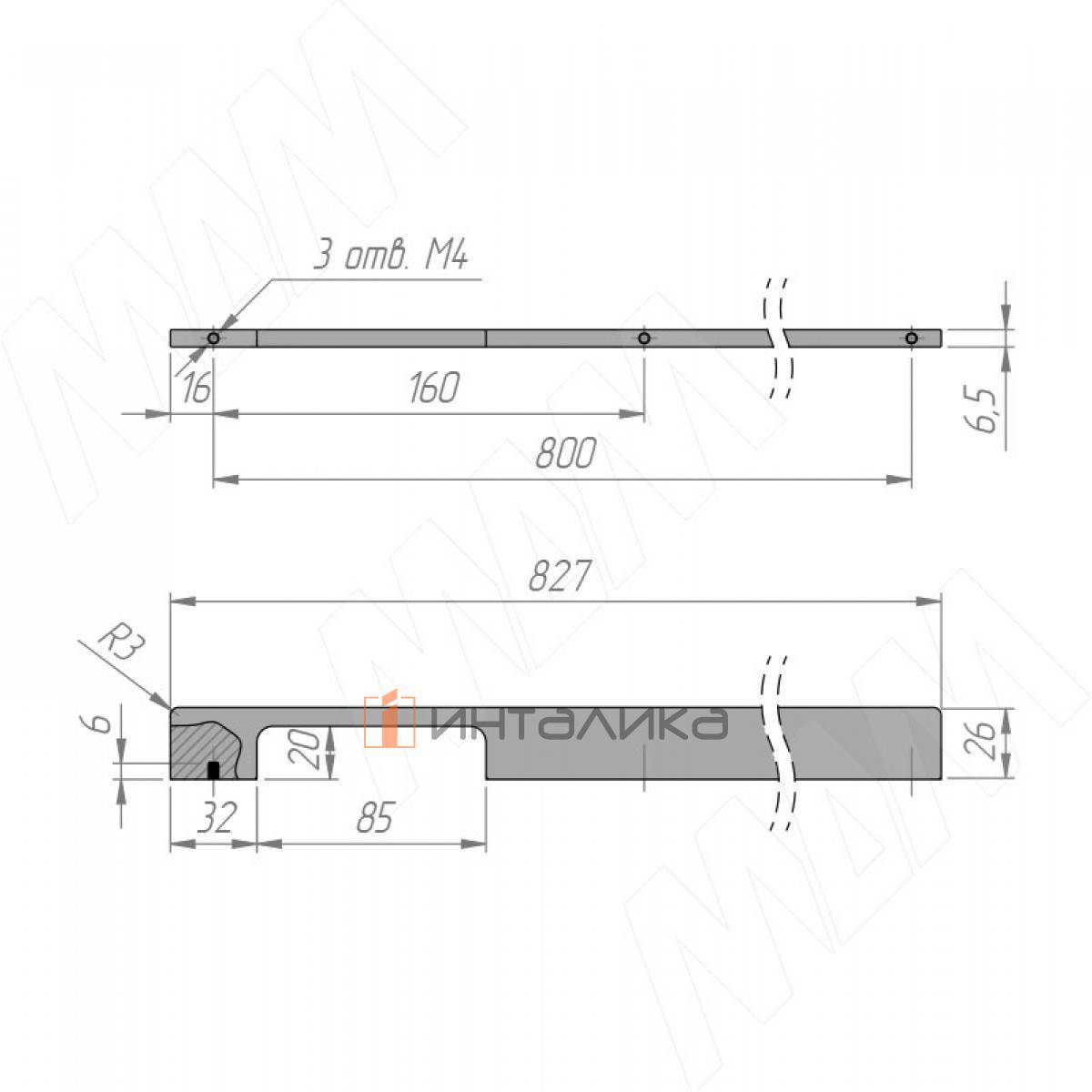 Профиль-ручка160/800мм(L=827мм)золотоматовое (PH.CN01.160-800.GA), PH.CN01.160-800.GA