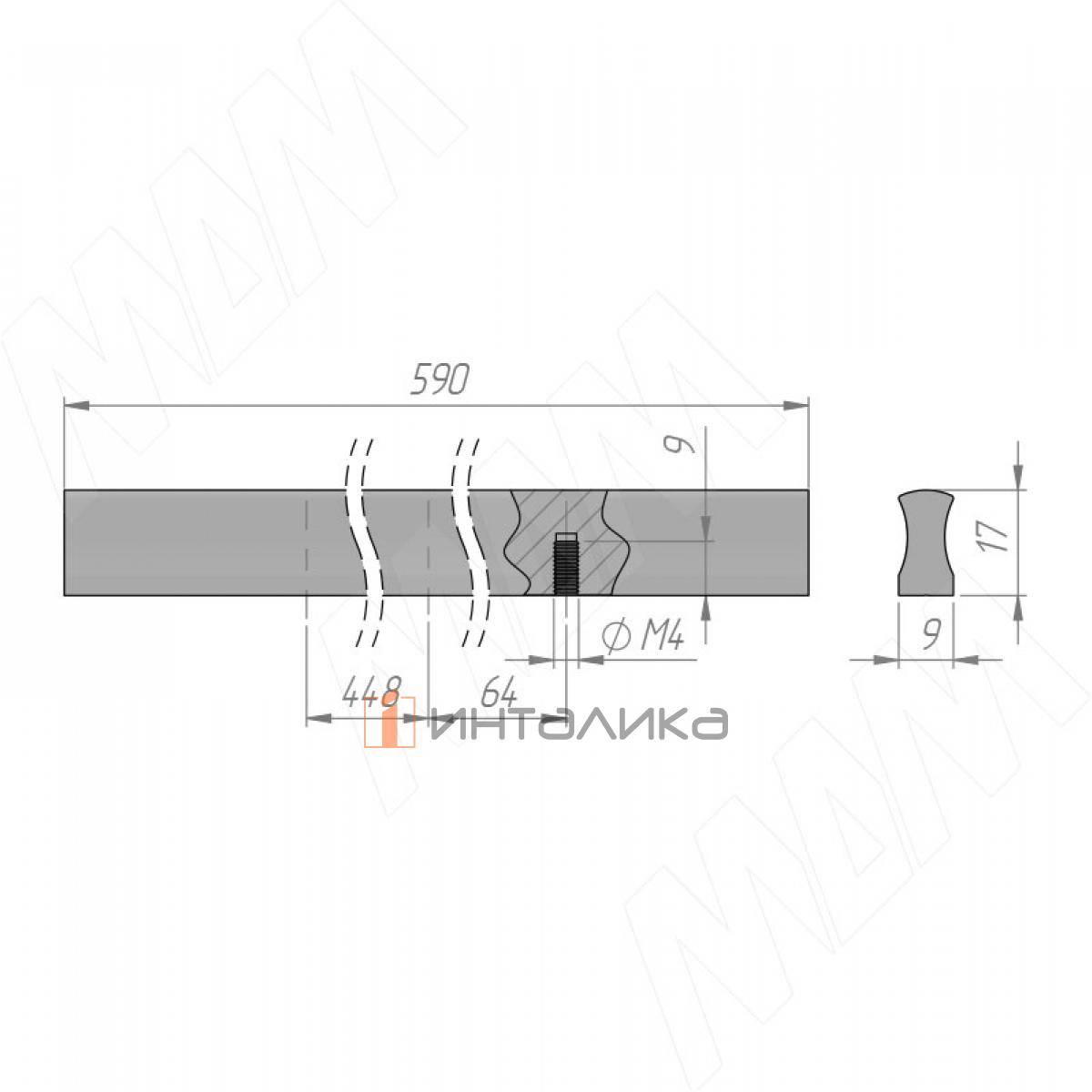Профиль-ручка 512мм (L=590мм) черный матовый (PH.RU02.512.BL), PH.RU02.512.BL
