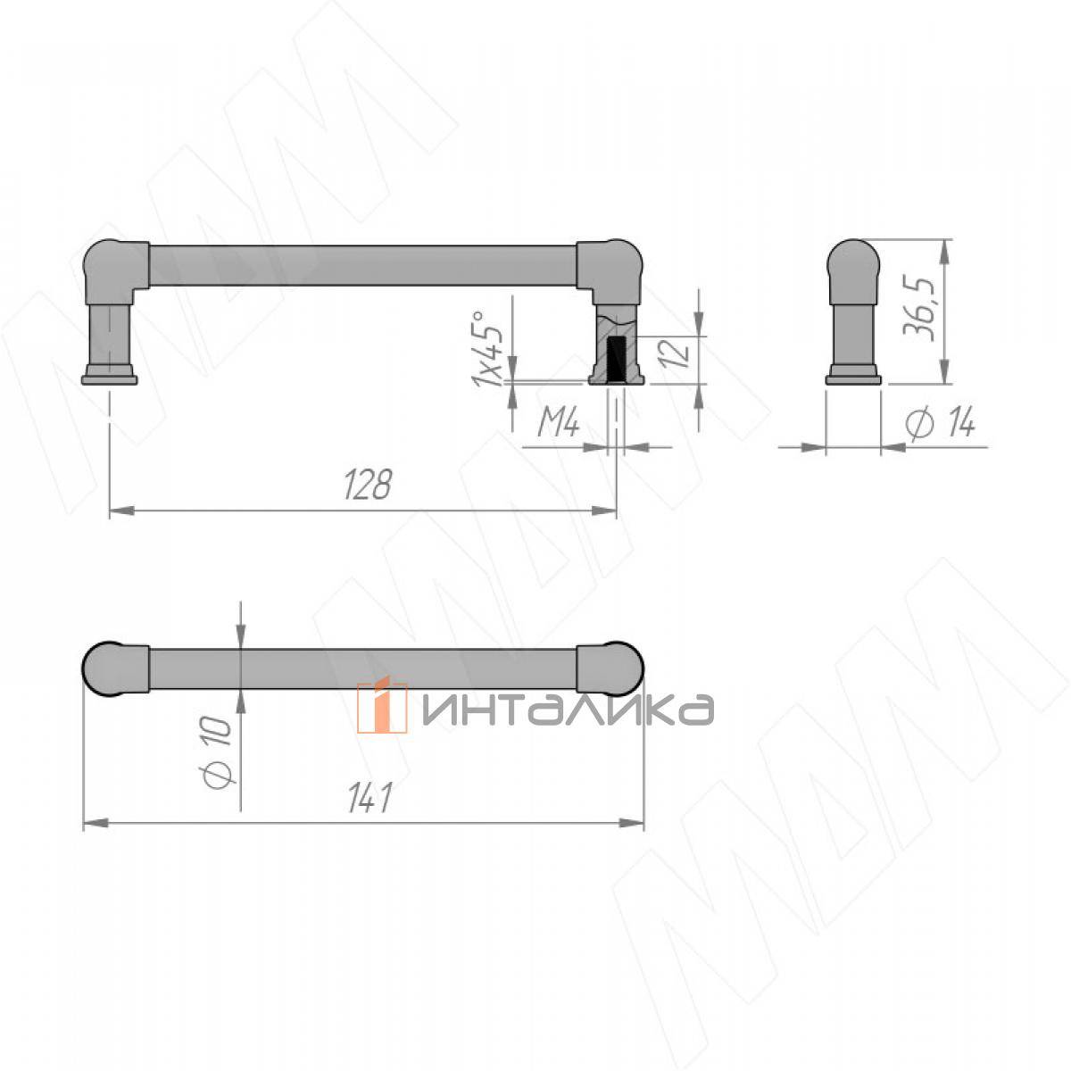 Ручка-рейлинг 128мм серебро состаренное (RH.05.128.AP), RH.05.128.AP