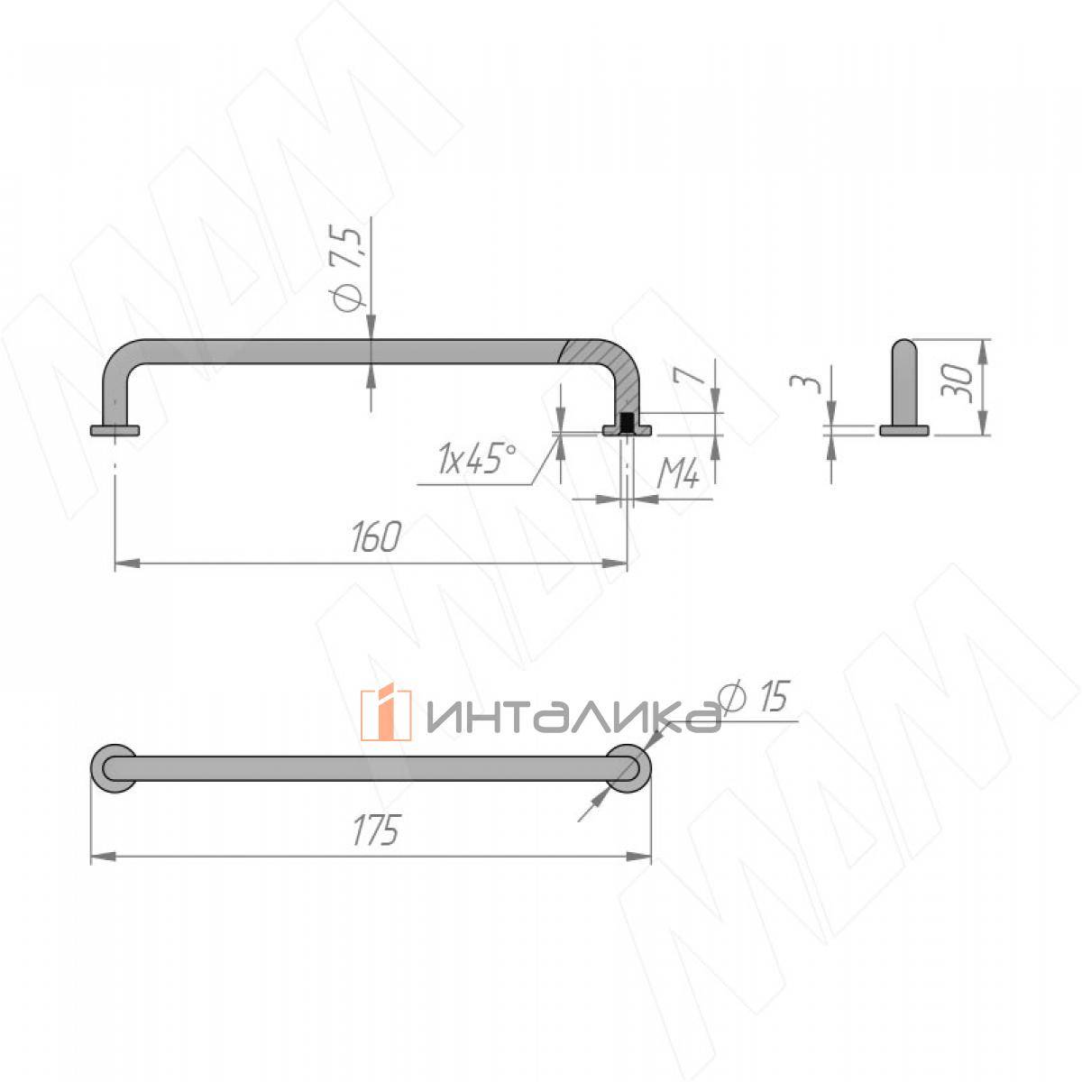 Ручка-скоба 160мм нерж. сталь (BH.24.160.BSN), BH.24.160.BSN