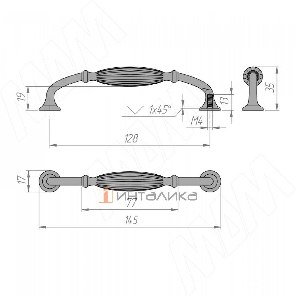 Ручка-скоба 128мм серебро состаренное (BH.47.128.AP), BH.47.128.AP