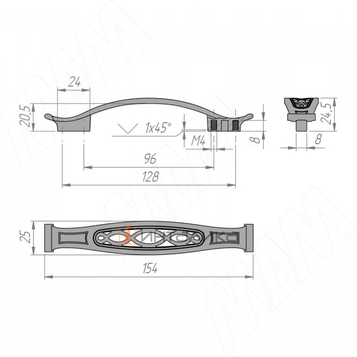 Ручка-скоба 96/128мм серебро состаренное (BH.42.096-128.AP), BH.42.096-128.AP