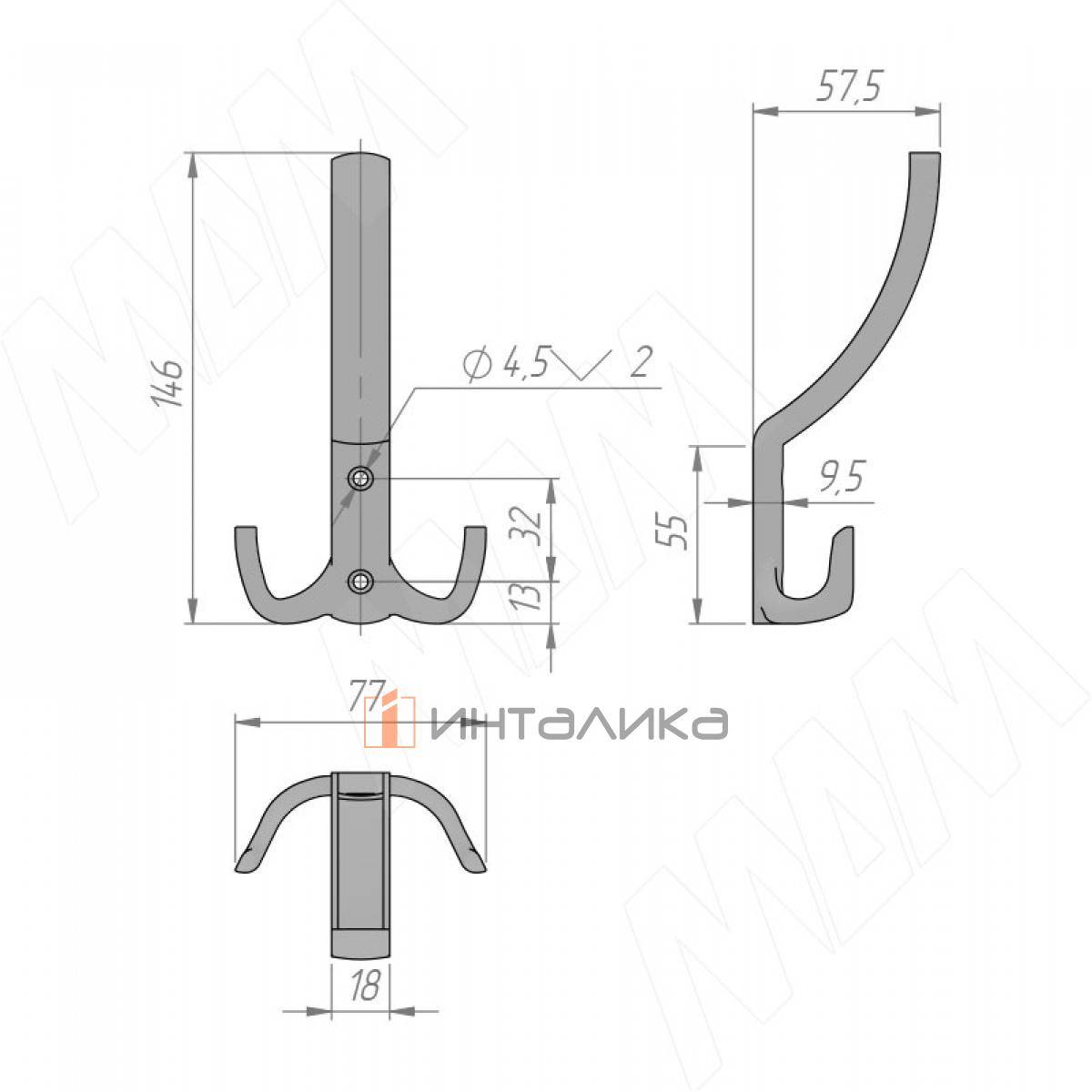 Крючок трехрожковый хром (HK.17.PC), HK.17.PC