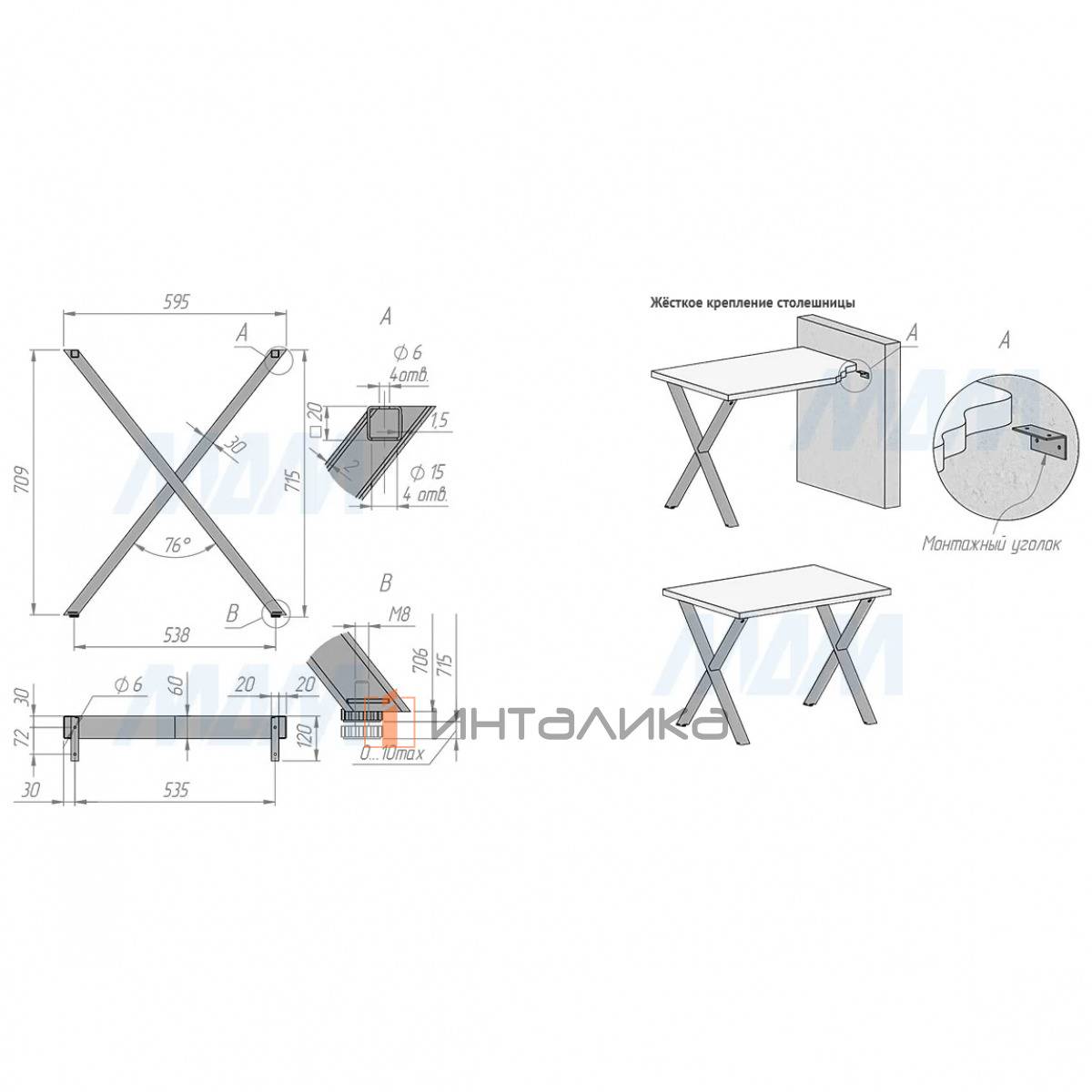Аспен опора для стола X-образная, 60х30, H715+10 мм, черный, 1шт. (AS60X30/715 BLC), AS60X30/715 BLC