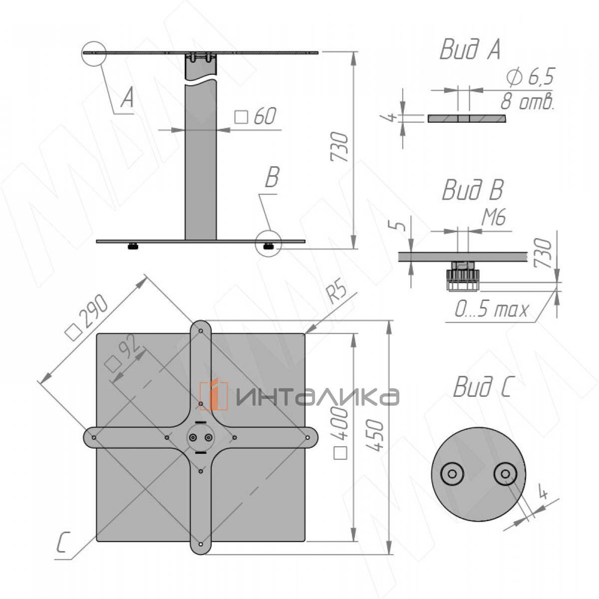 Лиссабон подстолье 400х400, H730+4мм, хром матовый (RAL 9006, муар) (LS730X400X400 CRM), LS730X400X400 CRM