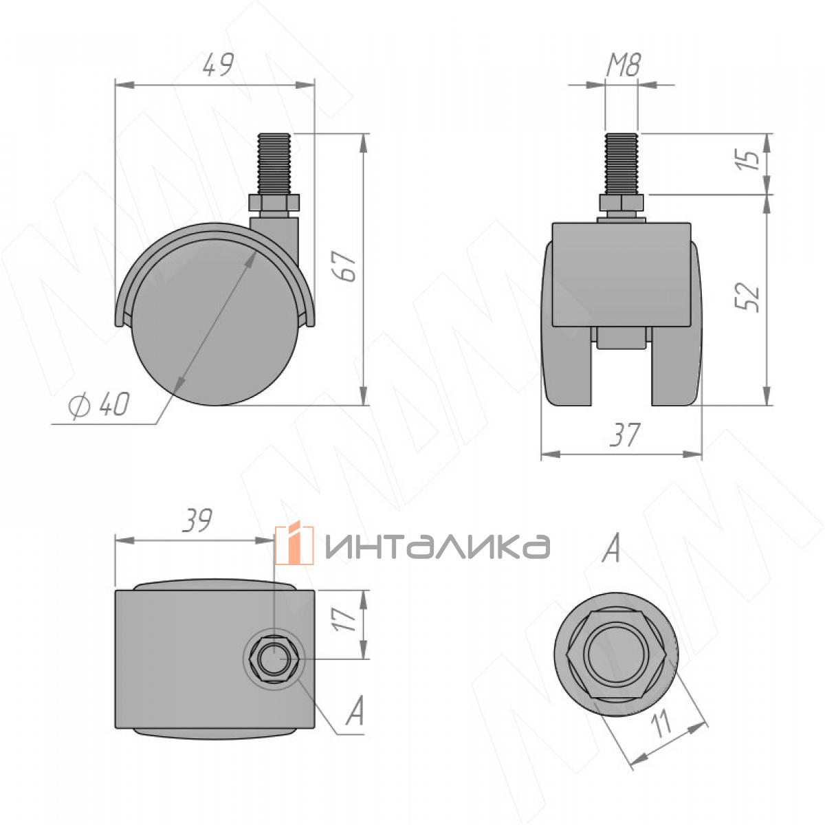 Опора двухколесная с винтом M8, D40 мм, без стопора, белая (OK-40/2/K/WH), OK-40/2/K/WH
