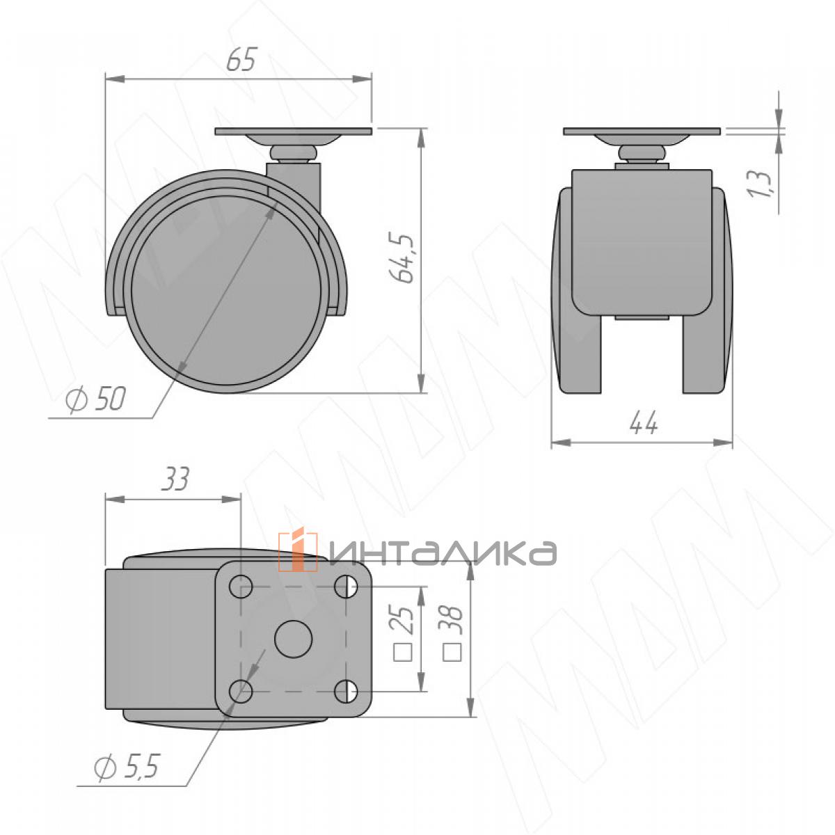 Опора двухколесная с площадкой, D50 мм, без стопора, серая (OK-50/1/K/GR), OK-50/1/K/GR