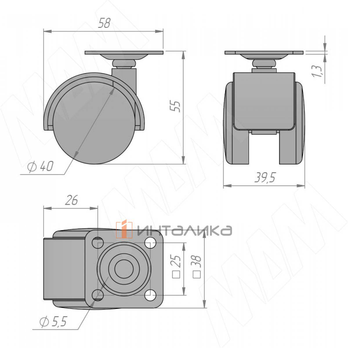 Опора двухколесная с площадкой, D40 мм, без стопора, серая (OK-40/1/K/GR), OK-40/1/K/GR