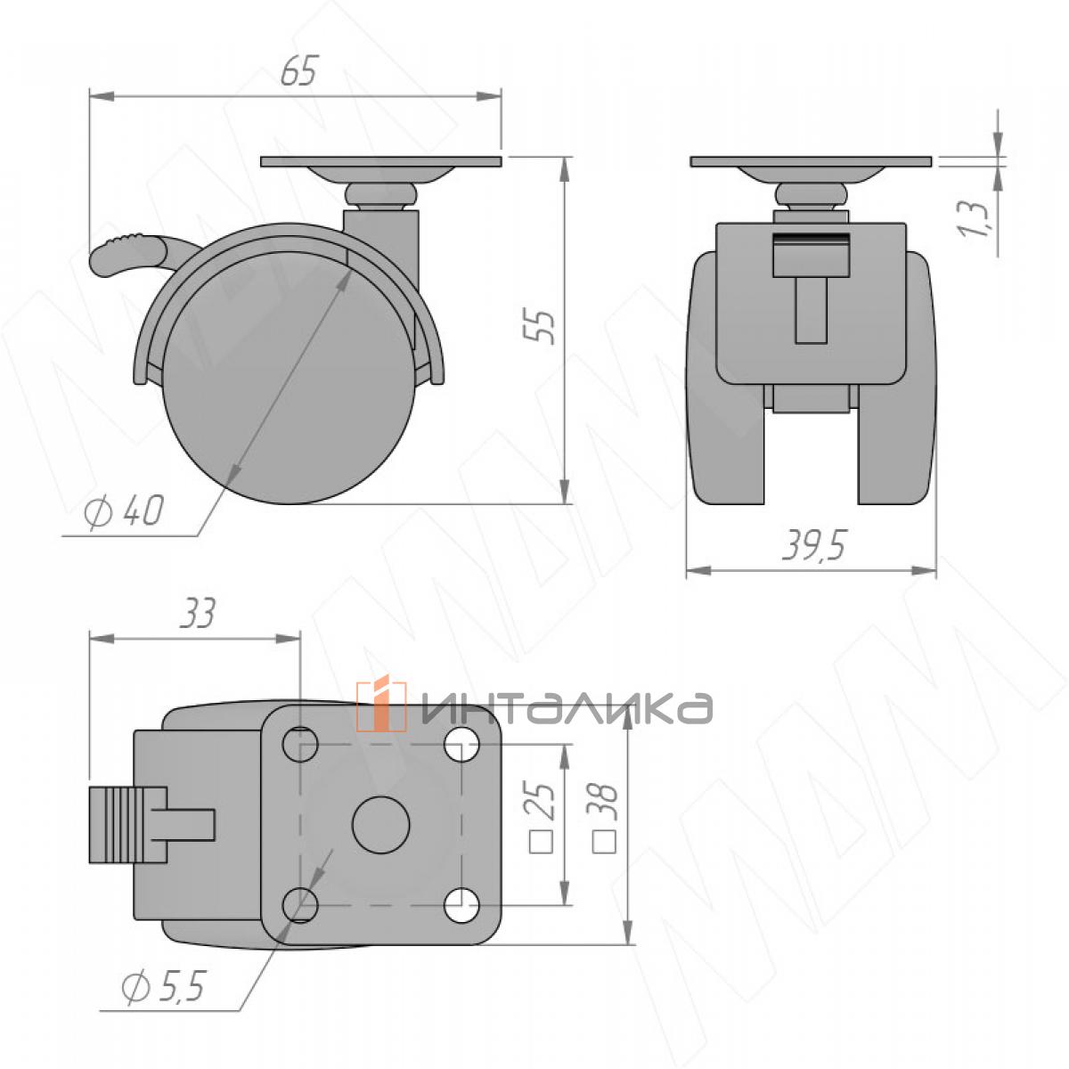 Опора двухколесная с площадкой, D40 мм, со стопором, белая (OK-40/1-CT/WH), OK-40/1-CT/WH