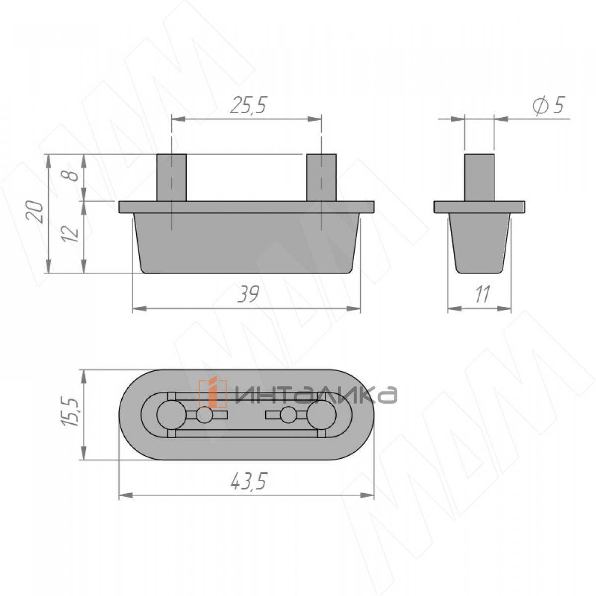 Пластиковый двойной подпятник с овальной шляпкой под отверстие диаметром 5 мм.