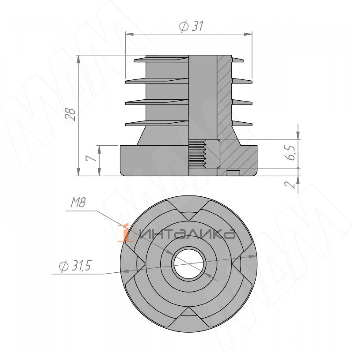 Применение: для труб круглого сечения диаметром 32 мм в качестве основания для регулируемой опоры
