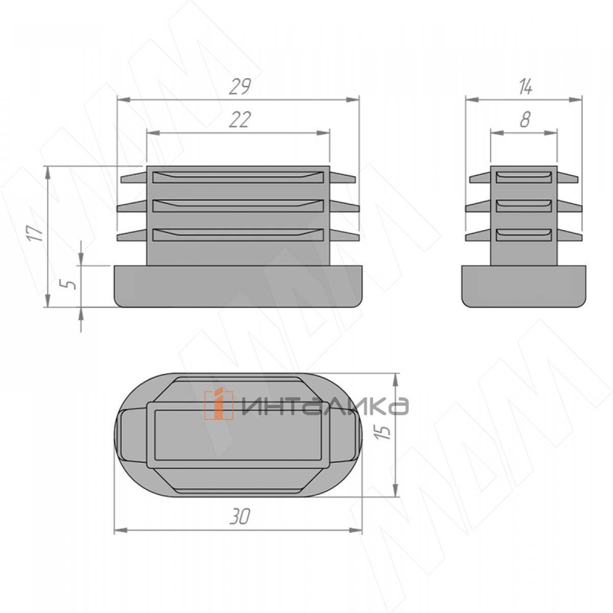 Заглушка /подпятник для овальной трубы 15x30 мм, черный (CC.3015.BL), CC.3015.BL