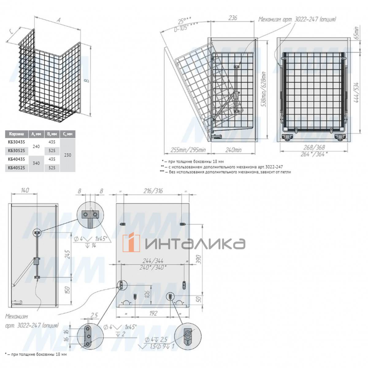 Комплектация: корзина, крепление к фасаду (клипса) — 4 шт.