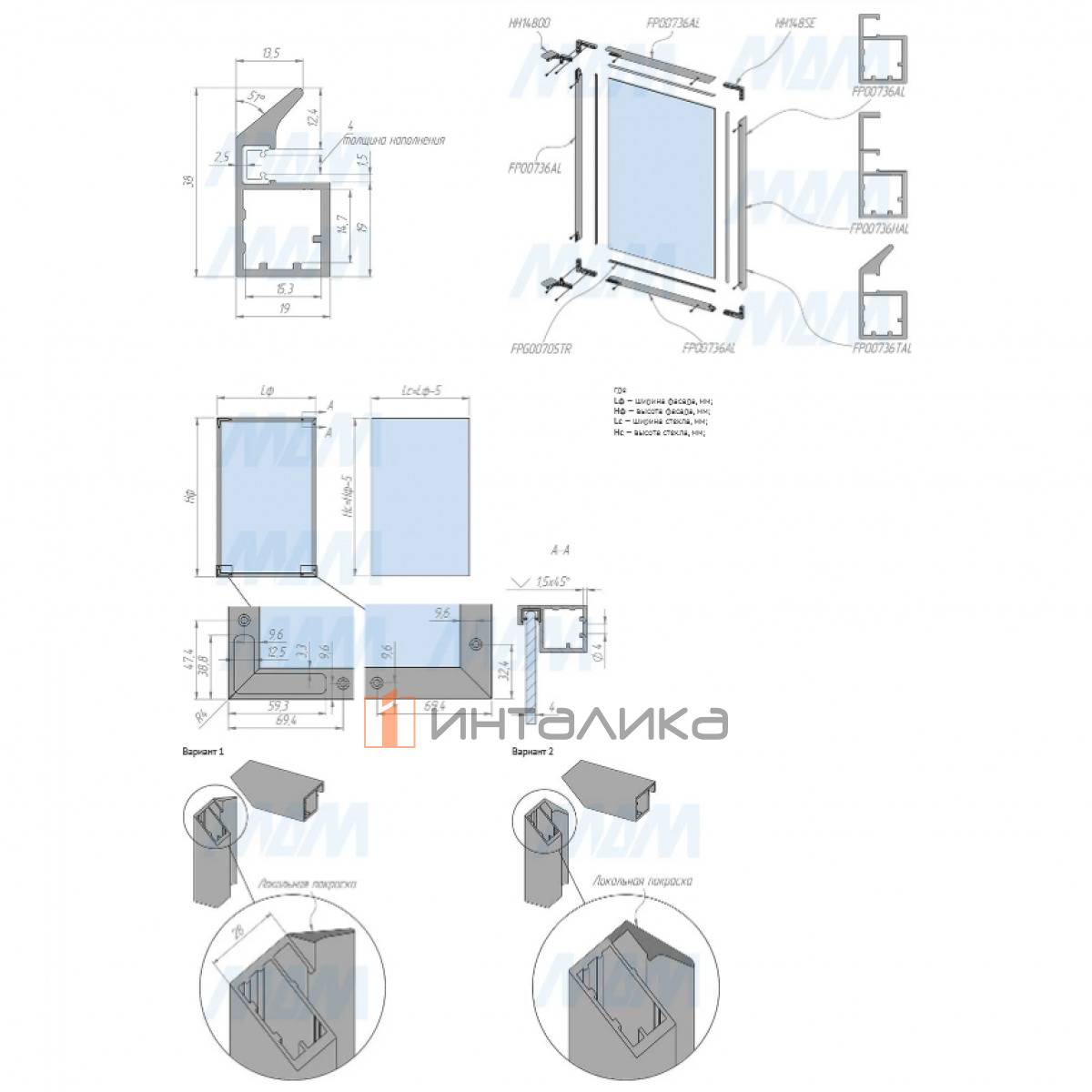 Профиль используется со скрытыми петлями SECRET MAXI и специальными сборочными уголками. Такое решение позволяет получить готовое изделие с практически незаметной для пользователя фурнитурой.