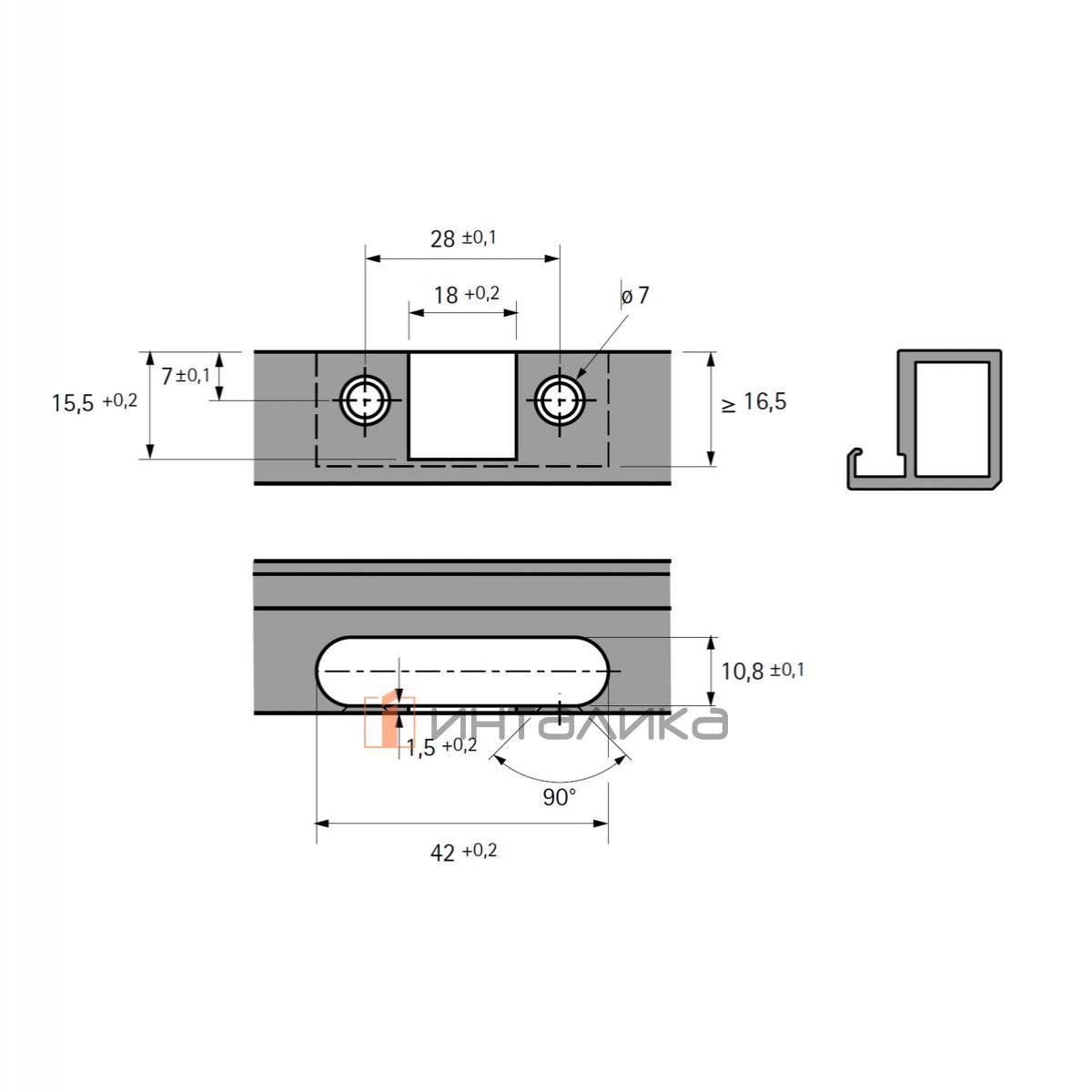 Применяется для открывания мебельных фасадов толщиной 19 - 32 мм, с шириной с алюминиевой рамы до 23.5 мм