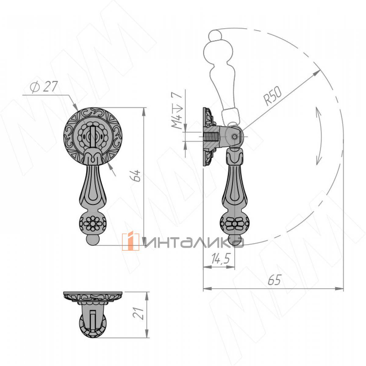 Ручка-капля бронза состаренная (KH.34.ABV), KH.34.ABV
