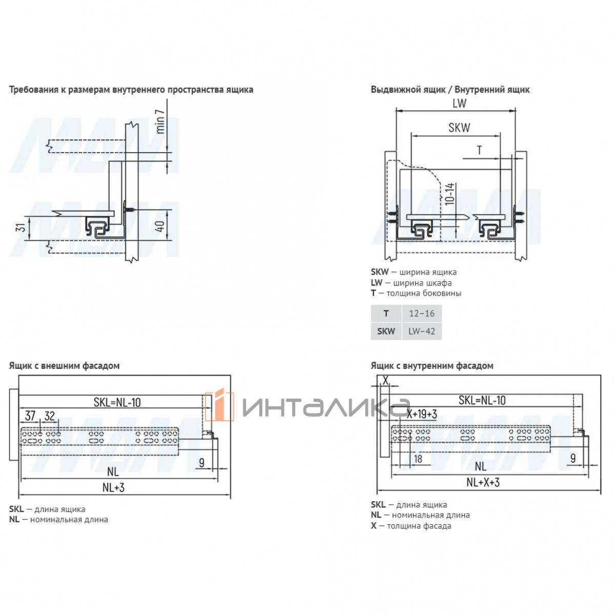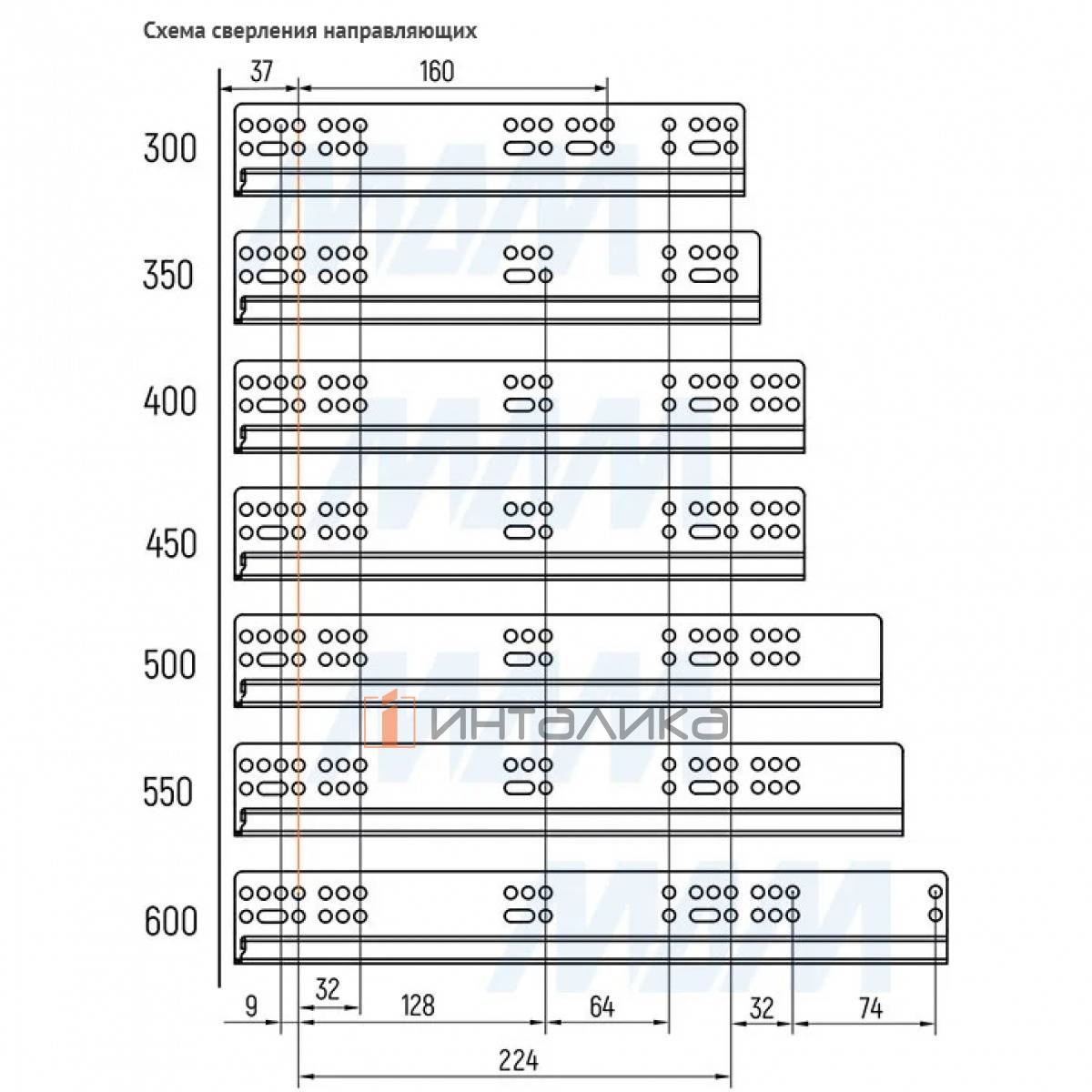 Комплект направляющих /500 мм (ниж. крепления, полного выдвижения) и механизма OneTouch (открывание от нажатия/плавное закрывание) (OT-S01.500), OT-S01.500
