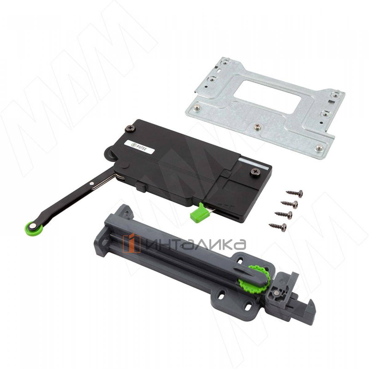 Комплектация: направляющая левая — 1 шт., направляющая правая — 1 шт., крепление к фасаду — 2 шт., механизм ONE TOUCH SLIDE — 1 шт., монтажная панель — 1 шт., активатор — 1 шт., евровинт — 4 шт.