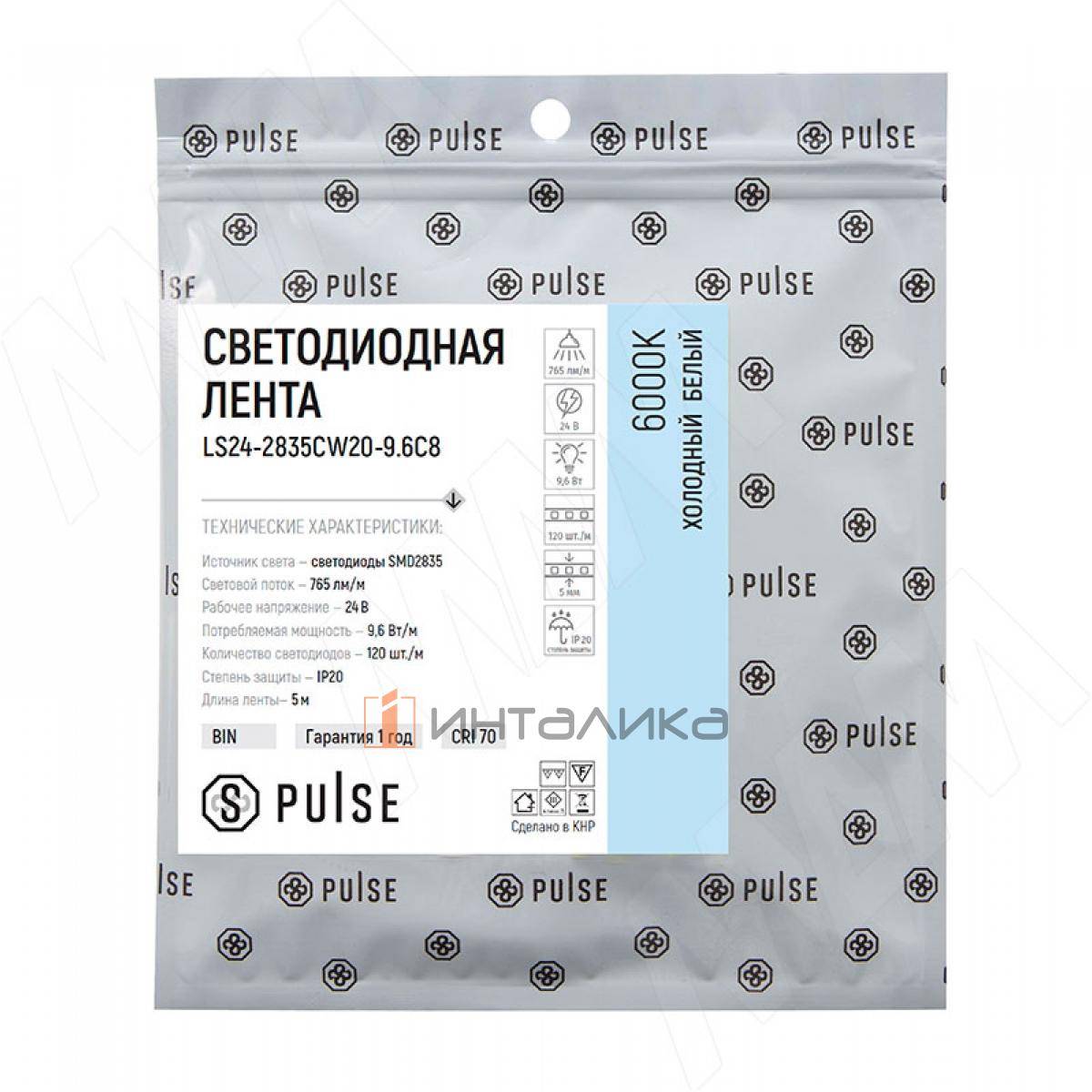 Цветовая температура: холодный белый, 6000 К
