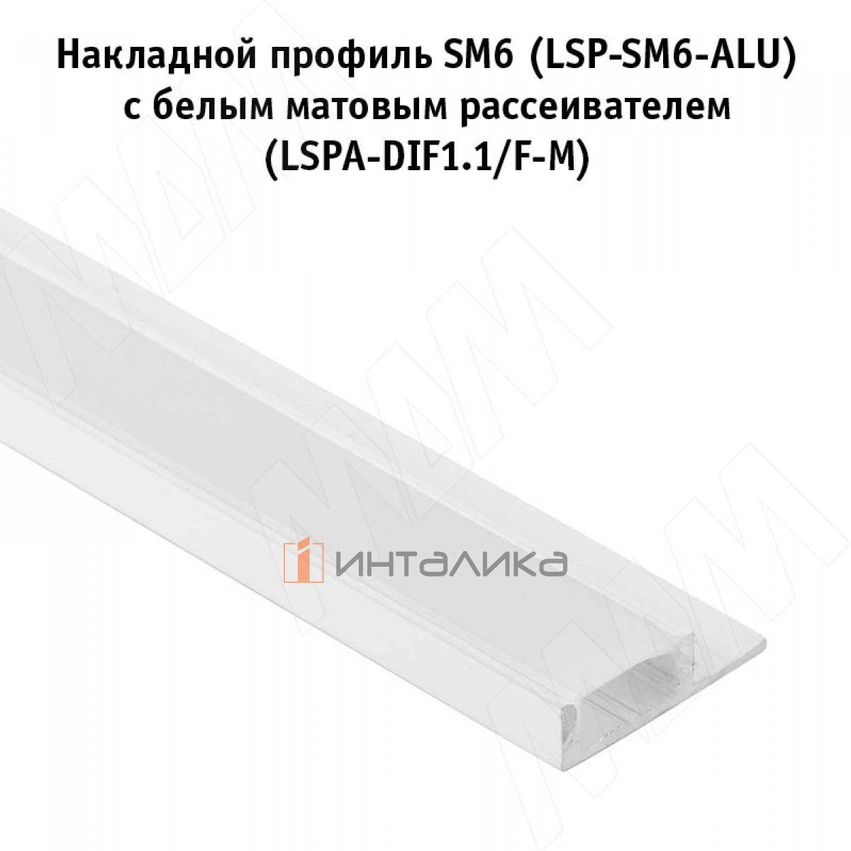 Профиль SM6, накладной, белый матовый, 24,5х6мм, L-3000, LSP-SM6-ALU-3000-WHM