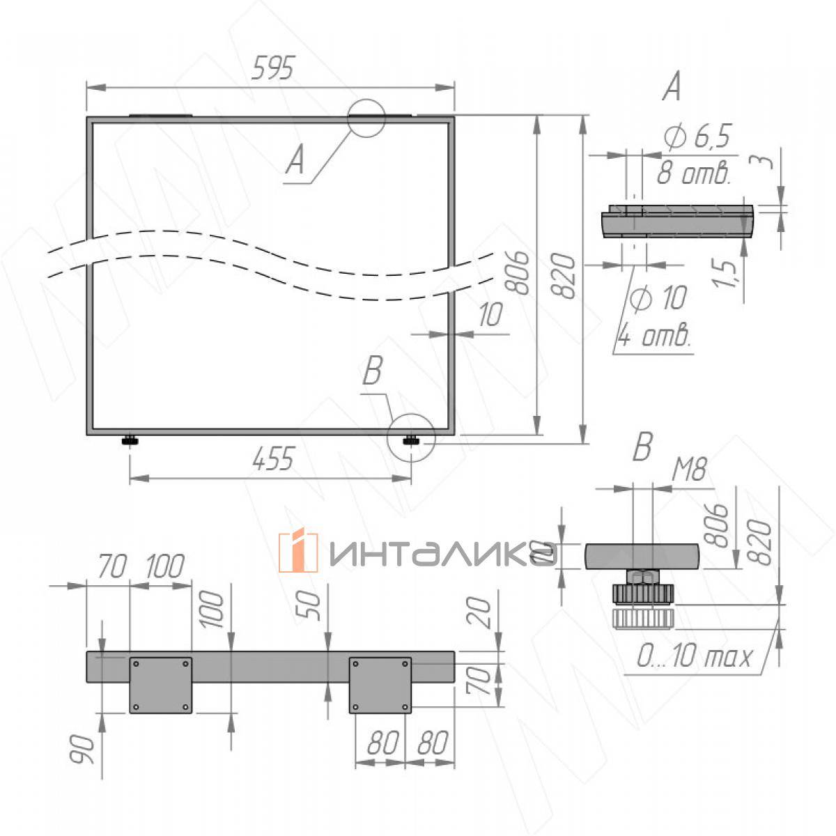 Комплектация: опора, ножка регулируемая M8×14 мм — 2 шт., заглушка D10 мм — 4 шт.