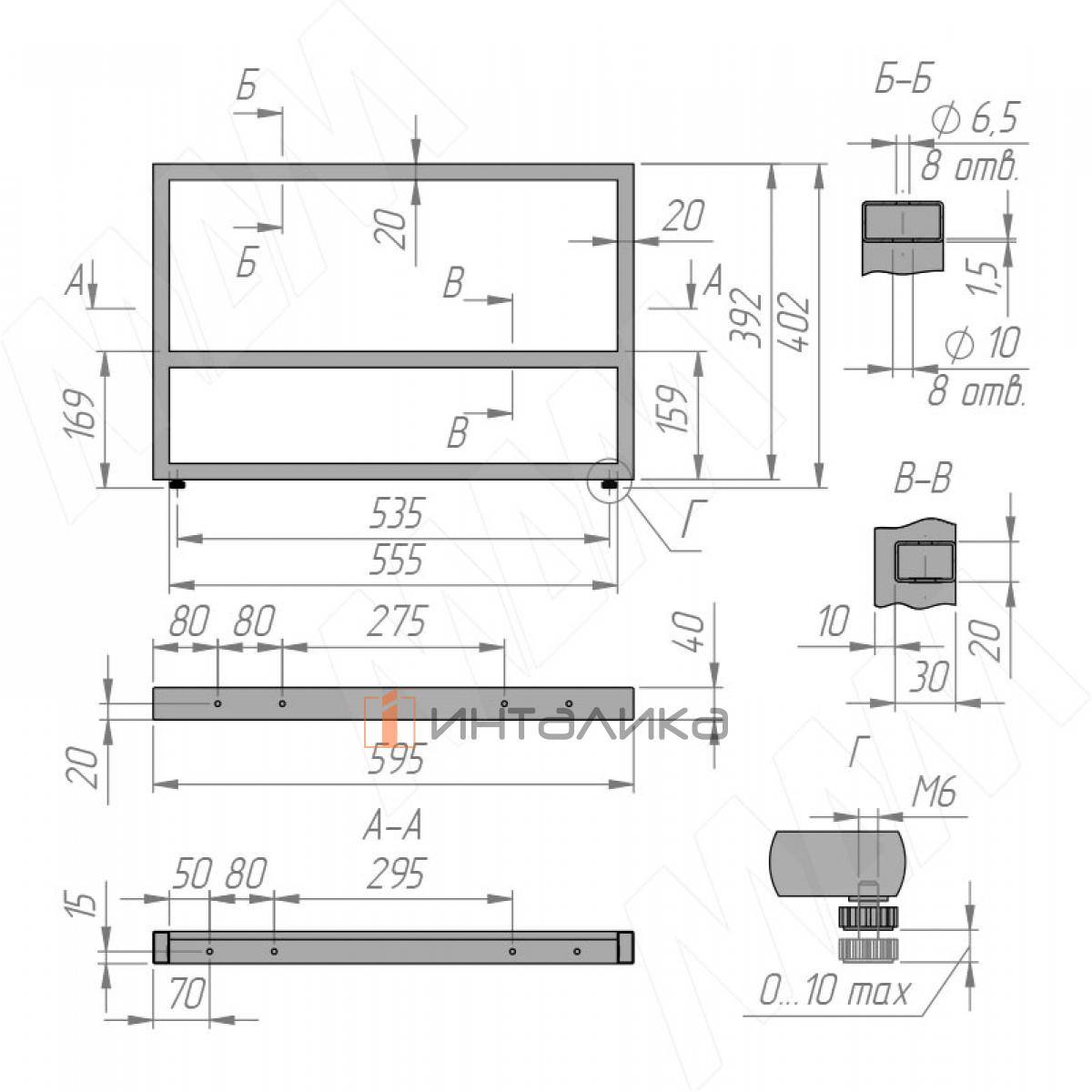 Комплектация: опора, ножка регулируемая M6×22 мм — 2 шт., заглушки D10 мм — 8 шт.