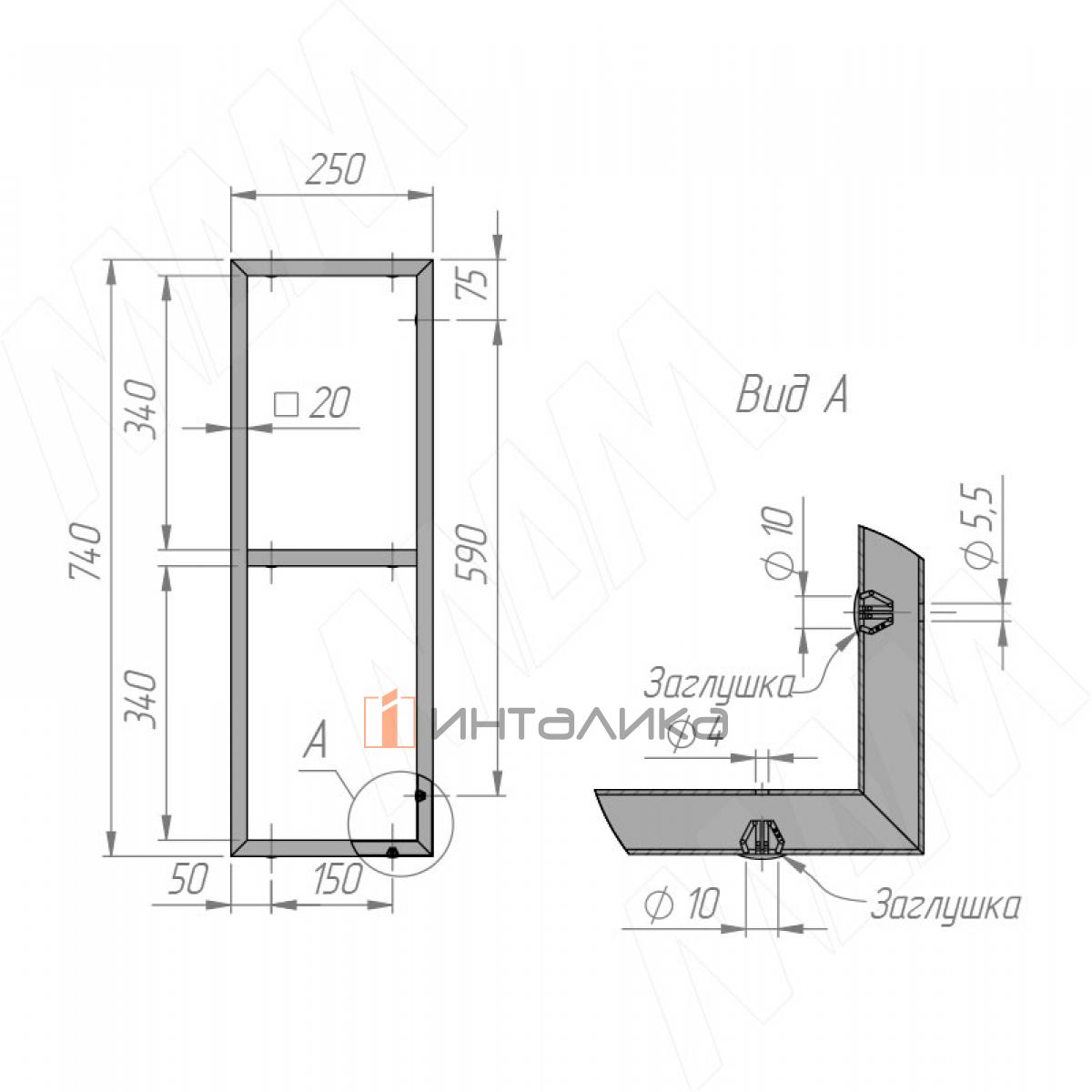 Комплектация: рамка, проставки для крепления D16×20 мм — 2 шт., заглушки для металла D10 мм — 8 шт.