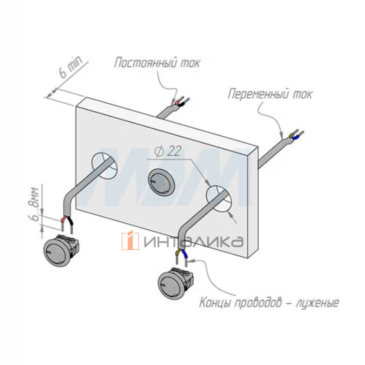 Установка и подключения: подготовить установочное отверстие ∅20 мм; зафиксировать провода в пружинных терминалах.
