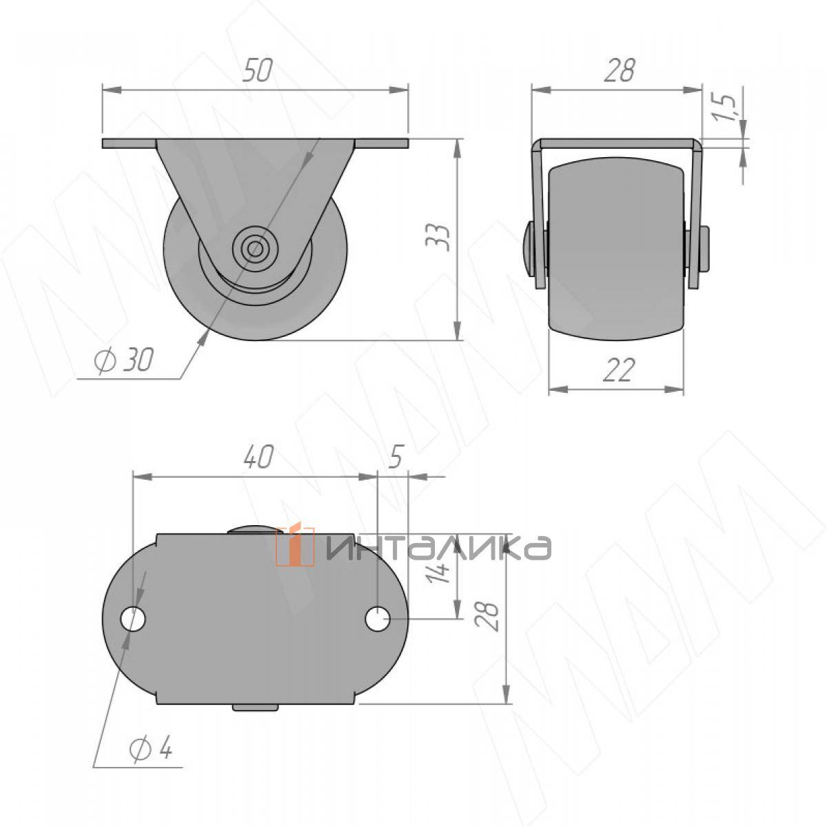 Опора колесная, прямоходная, высота 34 мм (KP-34), KP-34