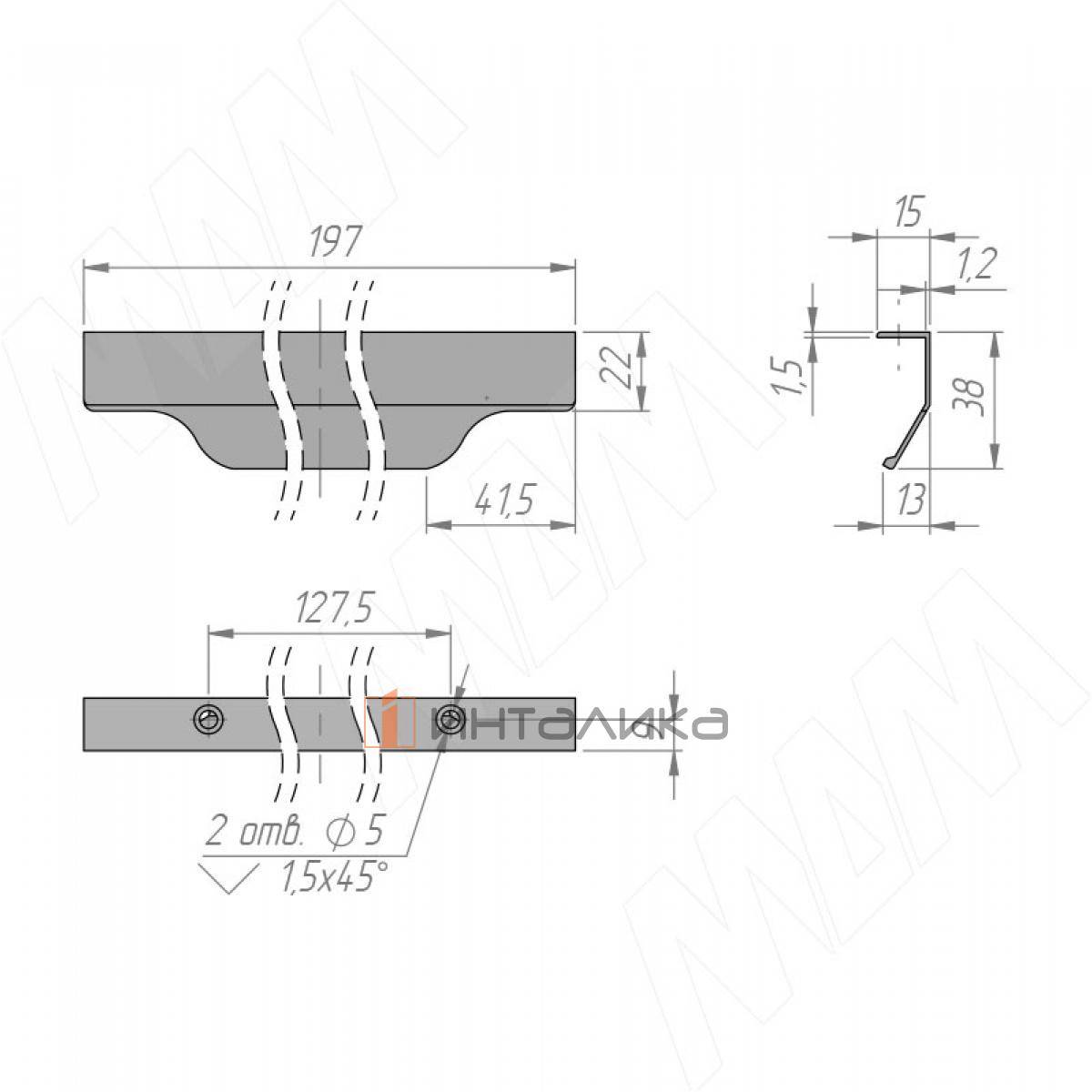 Профиль-ручка 200мм крепление саморезами нерж. сталь, 27.200.7M