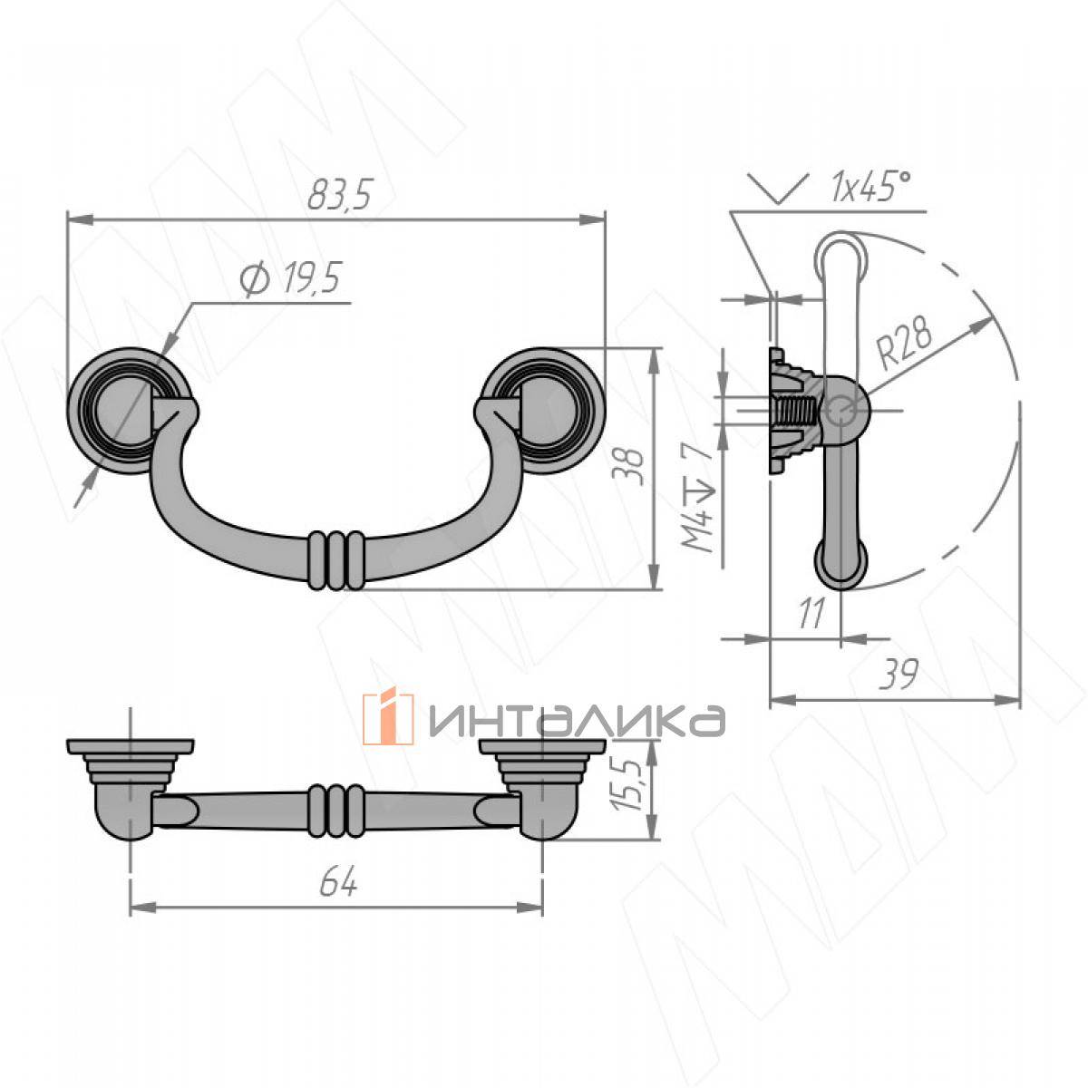 Ручка-скоба 64мм бронза состаренная, BH.70.064.ABV